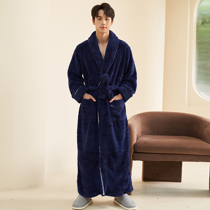 Главная страница > Пижамы мужские утолщенные бархатные коралловые бархатные осенне-зимние удлиненные халаты мужские зимние фланелевые халаты большого размера