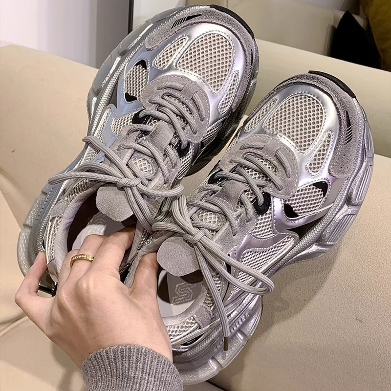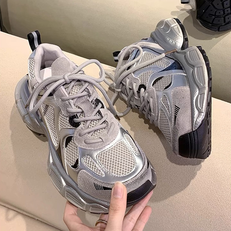 Главная страница > Женские кроссовки Lusi's с толстой подошвой, серебристые, для папы, весна-лето 2025, новые, сетчатые, дышащие, универсальные, из натуральной кожи, спортивные.