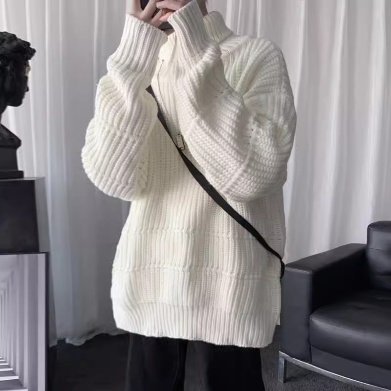 Главная страница > INS модный однотонный свитер с высоким воротом Мужская Утепленная Повседневная Базовая рубашка на осень и зиму пуловер в гонконгском стиле свитер куртка