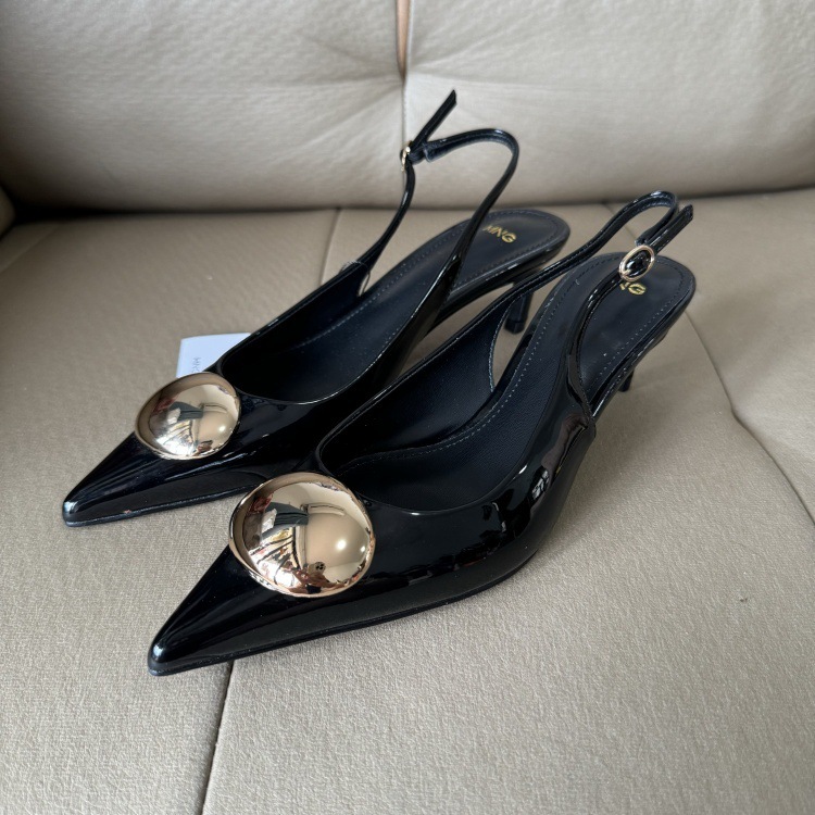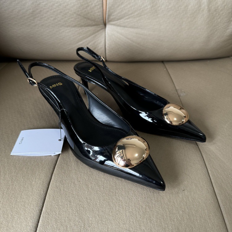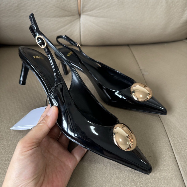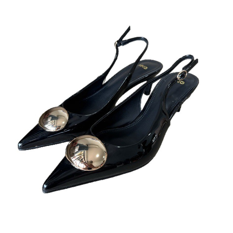 Главная страница > Летние женские туфли 2025 года, черные, с овальной пряжкой, из лакированной кожи, с острым носком, на каблуке-китенке, сандалии-мюли на низком каблуке.