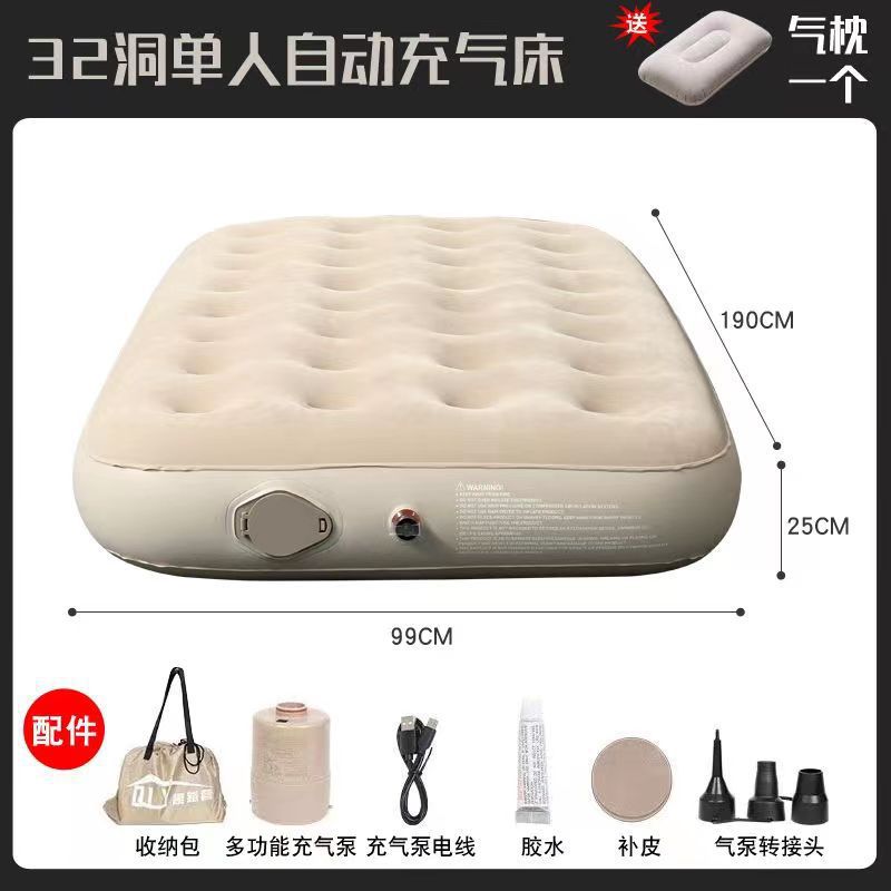 Одинарная не поднимающаяся автоматическая надувная кровать с 32 отверстиями