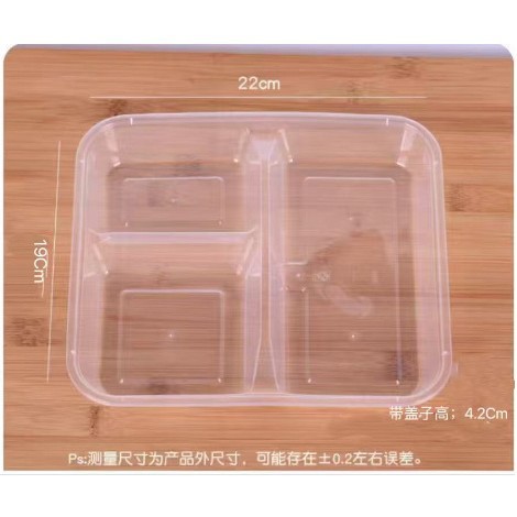 Одноразовые 1000 мл прозрачная трехсетка фаст-фуд ланч-бокс утолщенный чехол с большой емкостью упаковщик 3 сетки