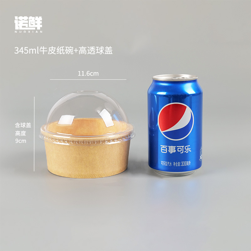 Чаша из крафт-бумаги объемом 345 мл + шариковая крышка с высокой прозрачностью