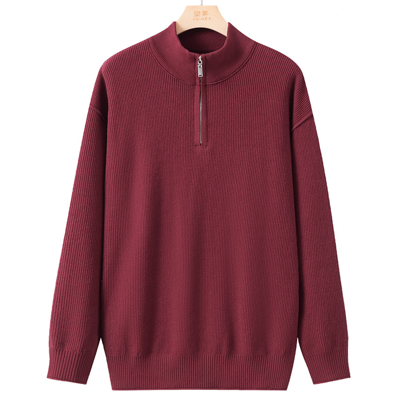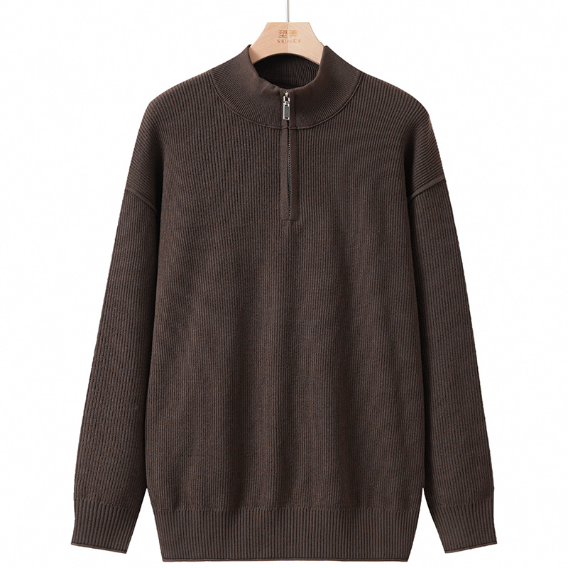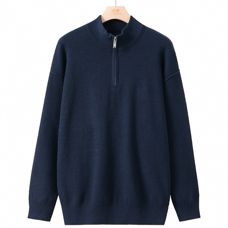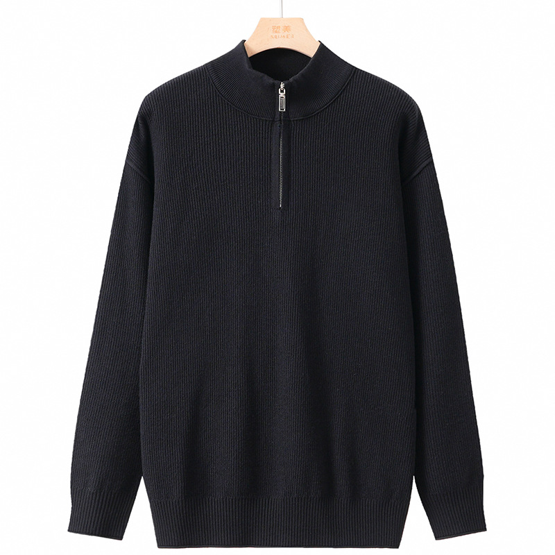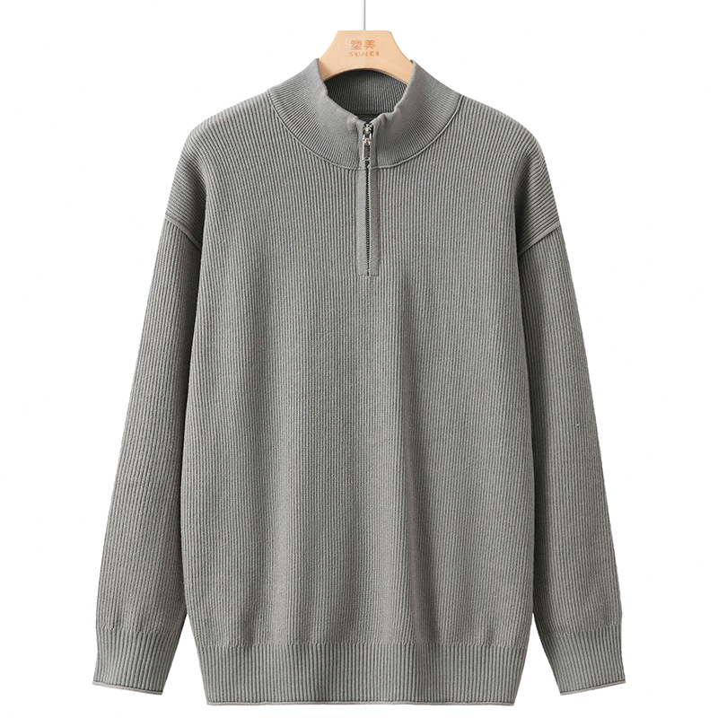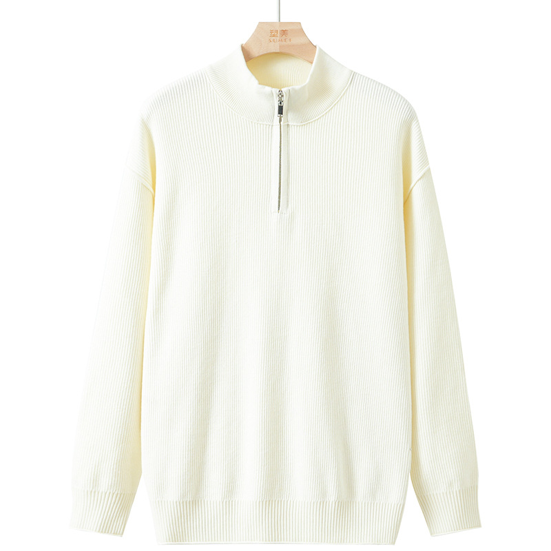 Мужской свитер из тенселя, оптом от фабрики Даоланг, осень-зима, повседневный, белый, с полугольфом и молнией.