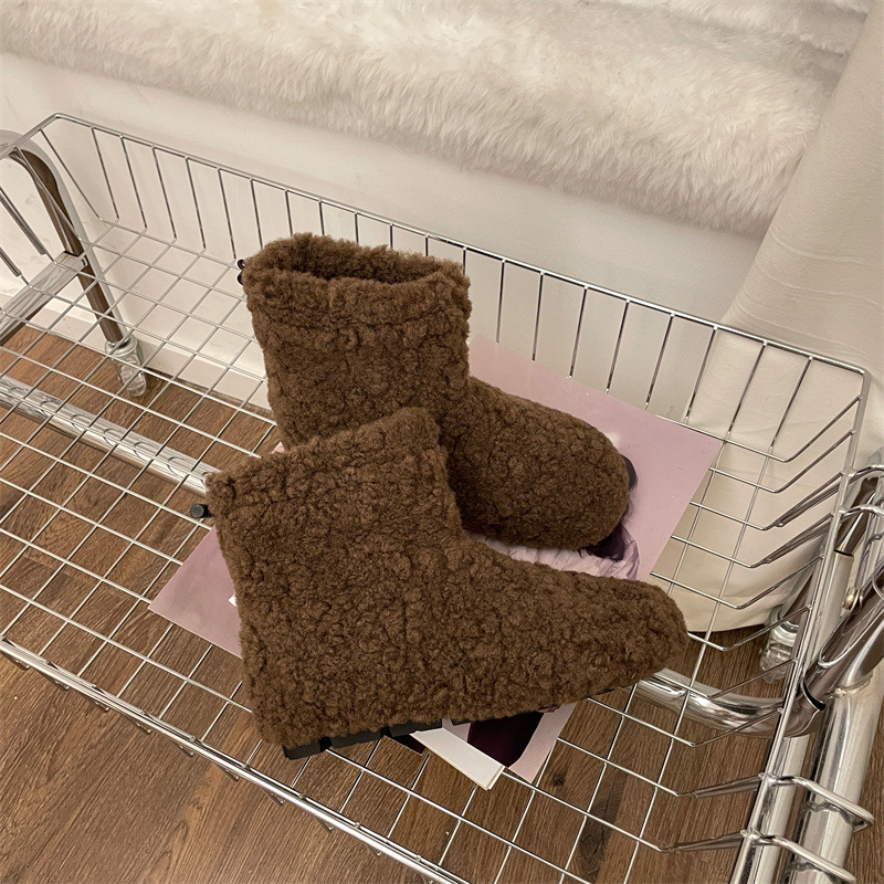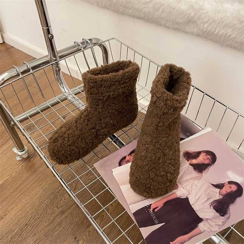 Главная страница > Теплые меховые сапоги на флисовой подкладке для женщин, зимняя верхняя одежда 2025, милые короткие сапоги-слипоны из овечьей шерсти, симпатичные белые зимние сапоги