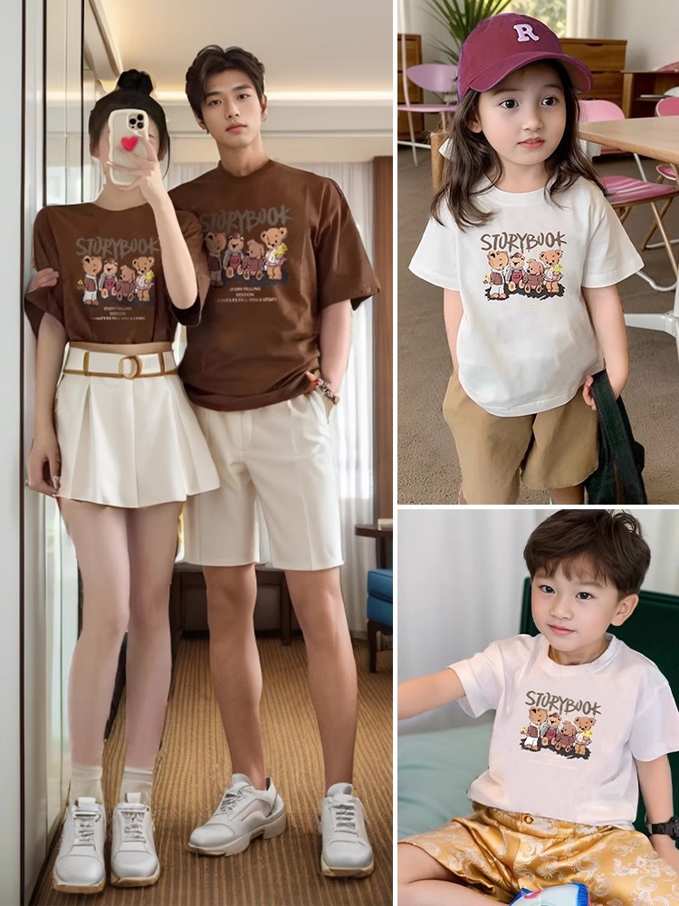 Главная страница > Модные летние семейные комплекты 2024 года: элитные футболки с коротким рукавом для мамы и дочки, для семьи из трех или четырех человек, с принтом медведя.