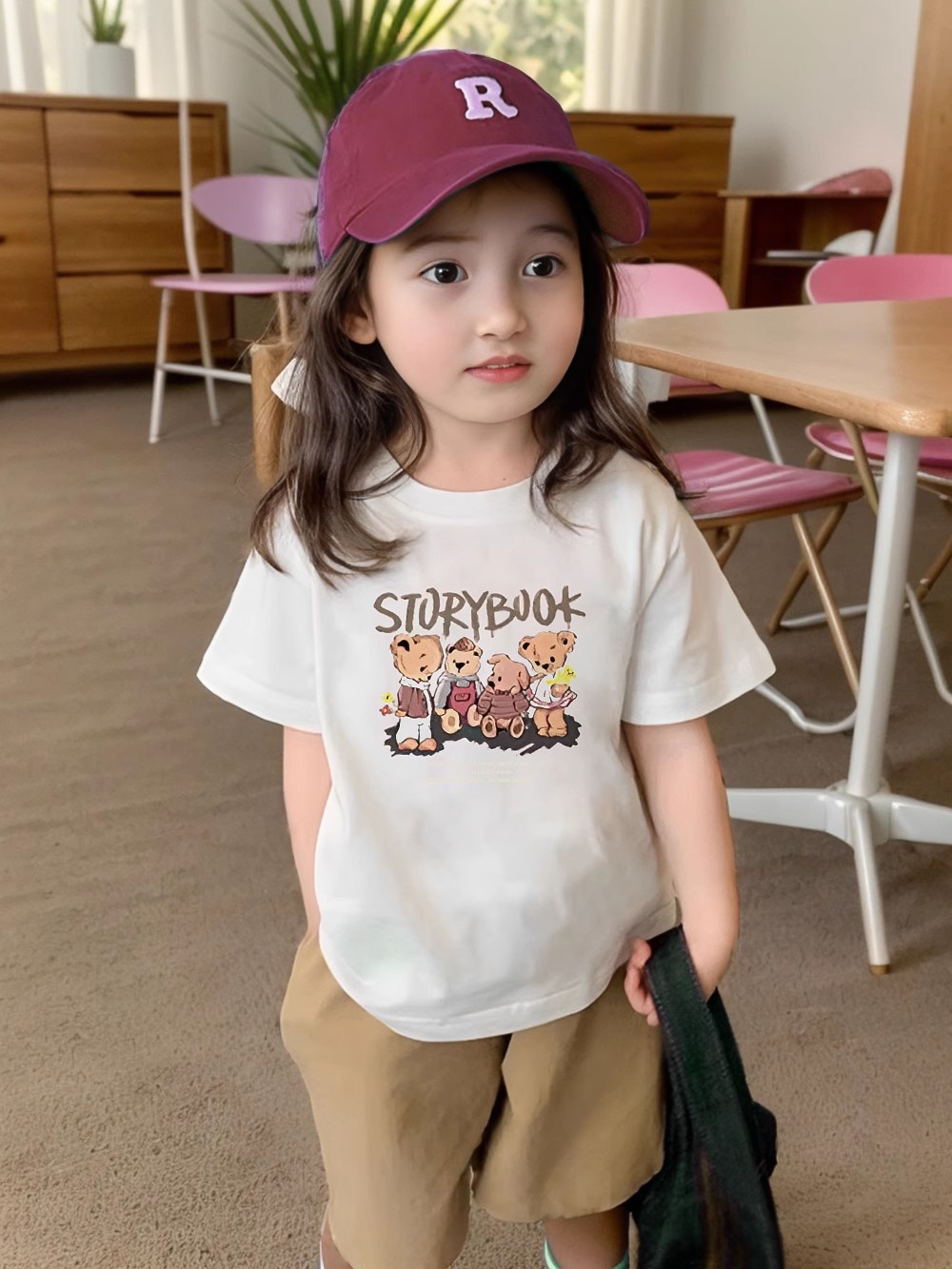Модные летние семейные комплекты 2024 года: элитные футболки с коротким рукавом для мамы и дочки, для семьи из трех или четырех человек, с принтом медведя.