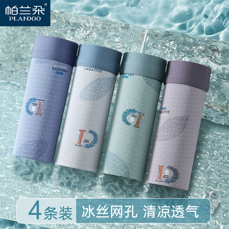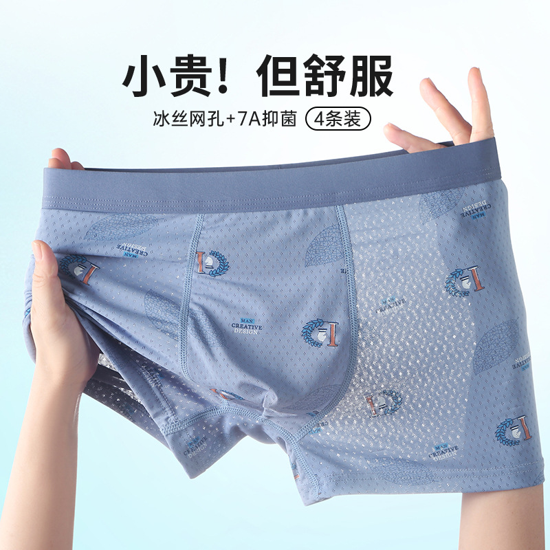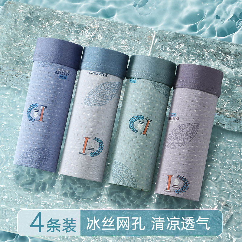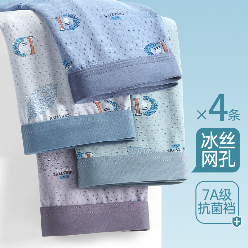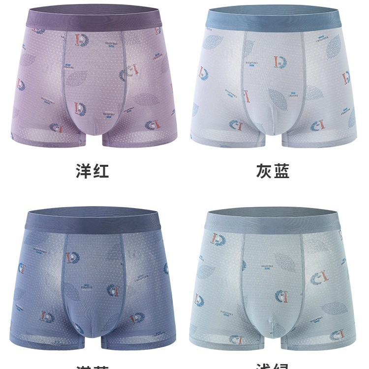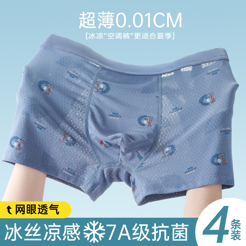 Ледяной шелк мужские трусики Летние тонкие мальчики тонкие плоские угловые антибактериальные дышащие без следов большой размер четырехугольные шорты