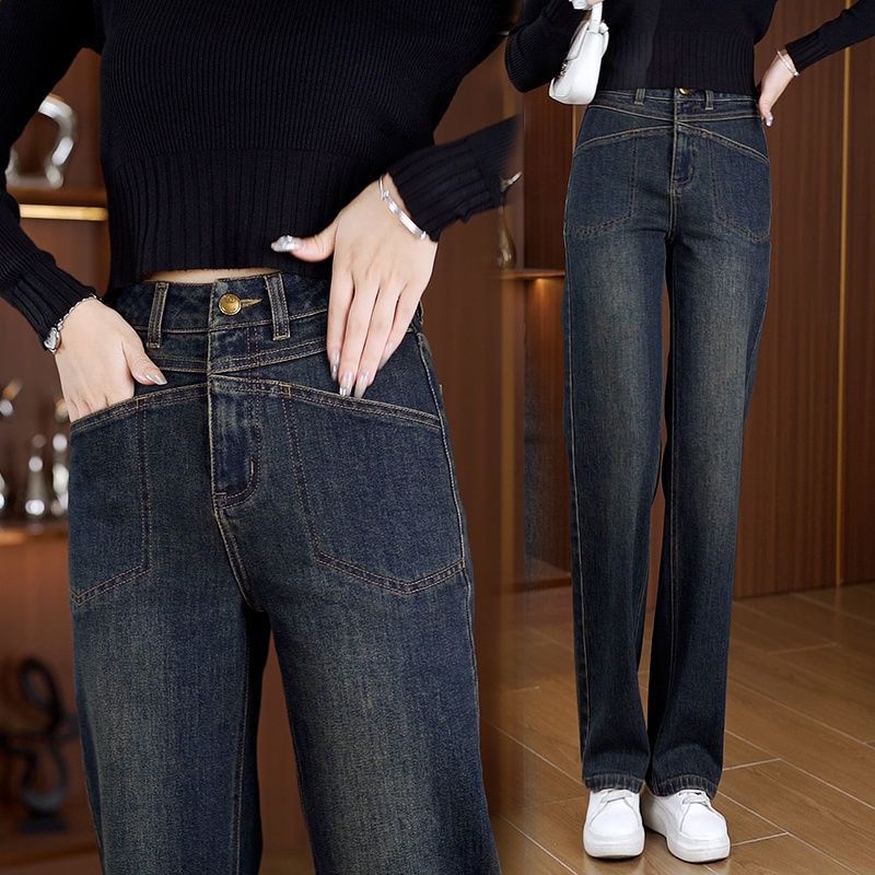 Главная страница > Прямые джинсы женская осень 2024 новые корейские ретро свободные брюки с высокой талией тонкая узкая версия прямых брюк