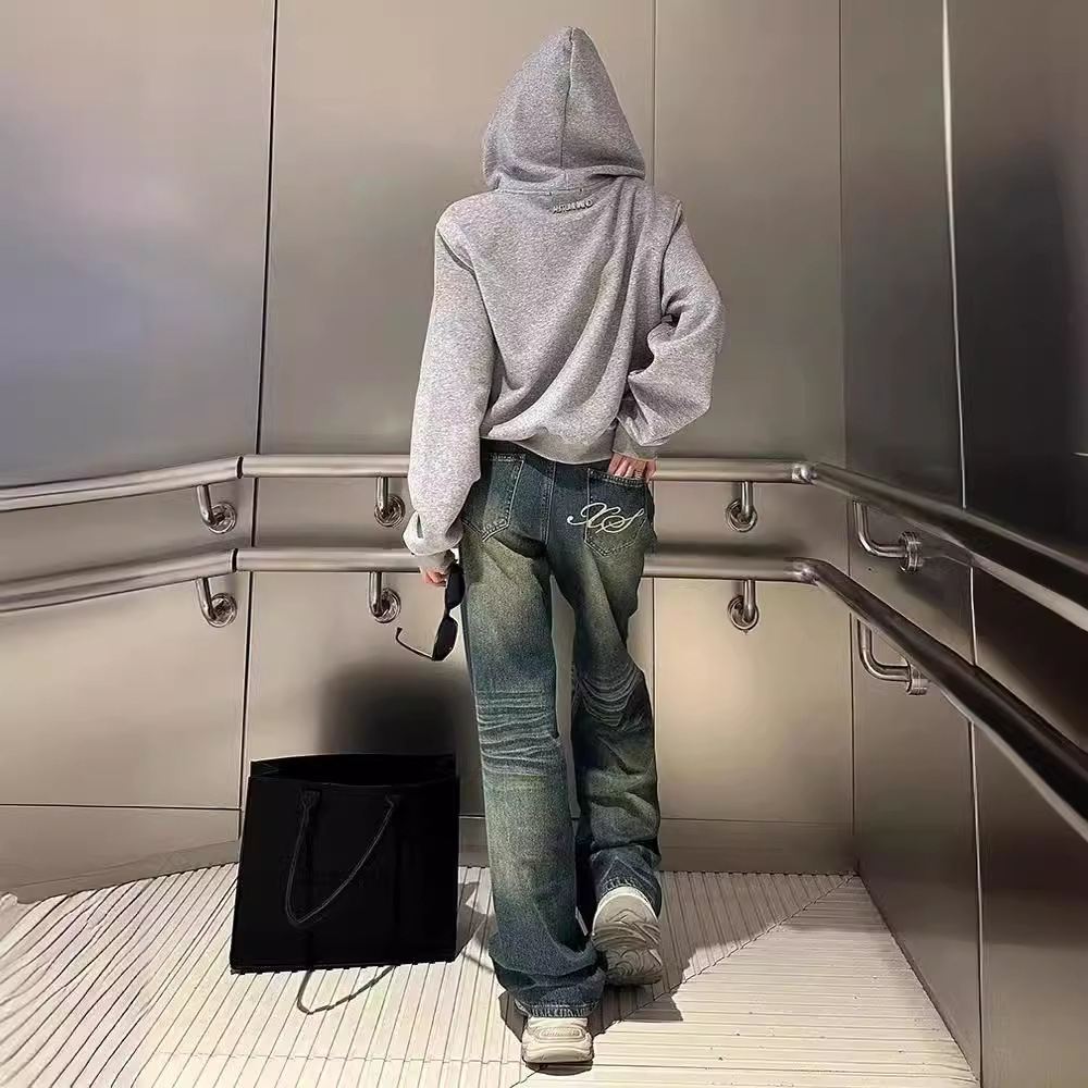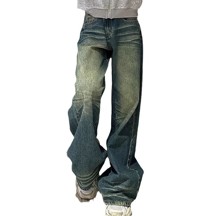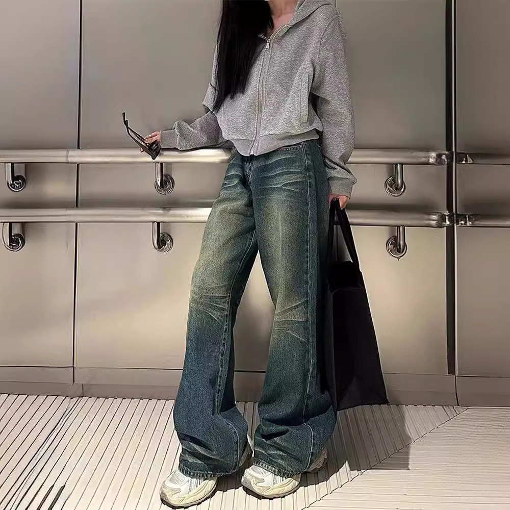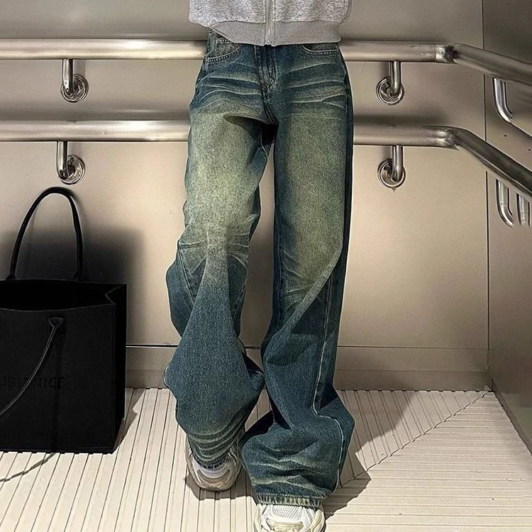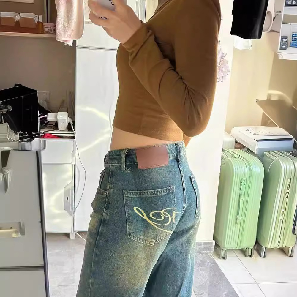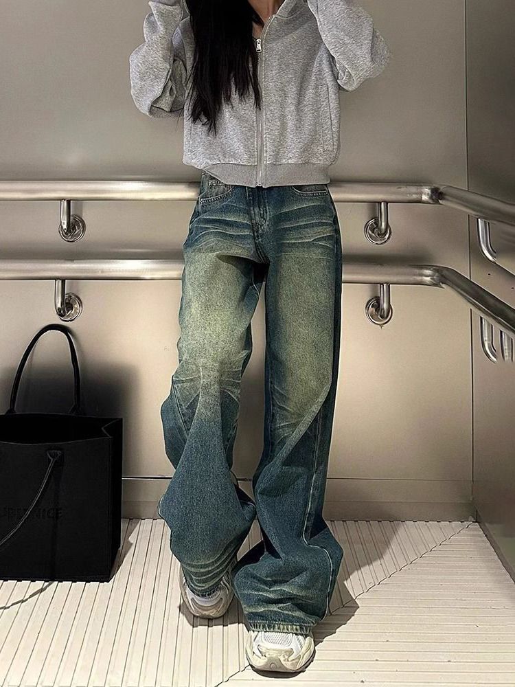 Главная страница > Постираные винтажные широкие джинсы для женщин, новые весенне-осенние низкие, свободные, утягивающие, универсальные прямые брюки в пол.