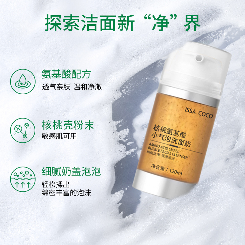 Небольшой пузырьковый полипептидный очищающий гель для лица с аминокислотами грецкого ореха, очищающий гель, освежающий контроль жирности, нежное очищение пор, индивидуальный заказ