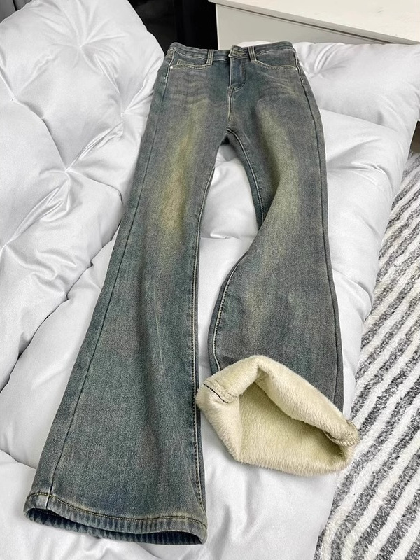 Главная страница > синие бархатные джинсы ретро для женщин осенью и зимой, новые утягивающие брюки с высокой талией для полных девушек мм, расклешенные брюки в форме груши