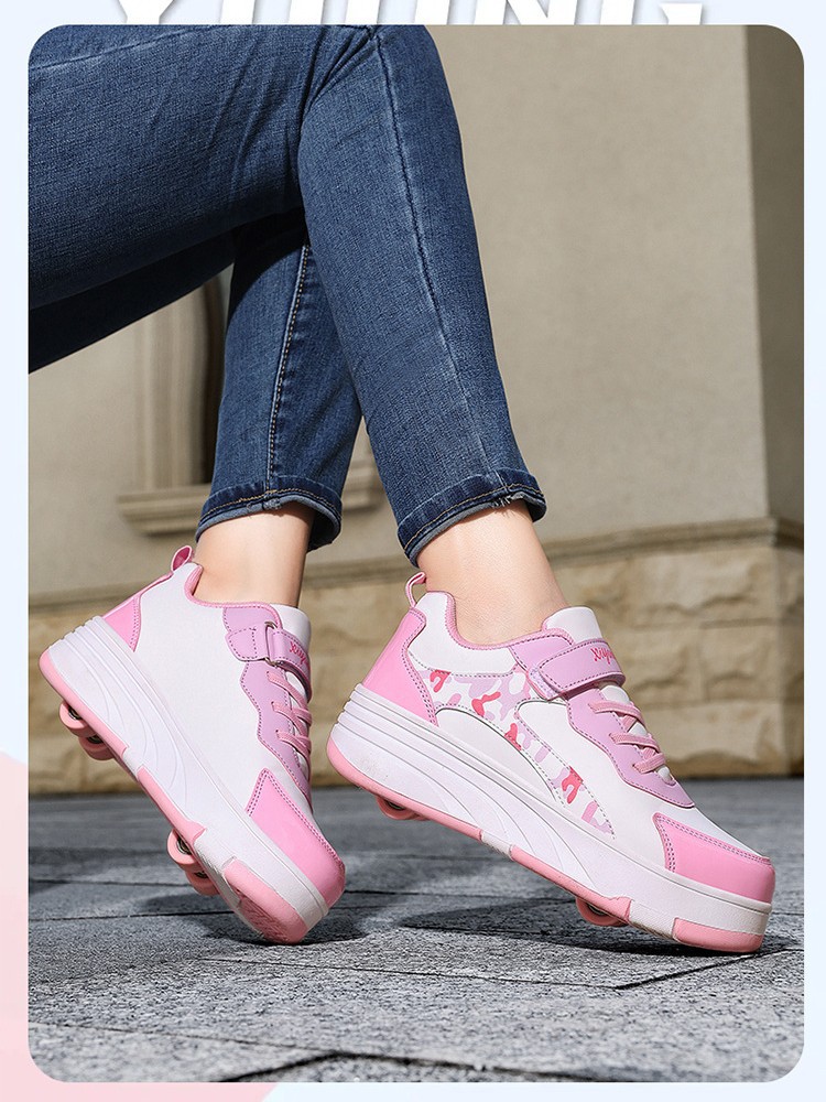 Главная страница > Новая готовая детская обувь-трансформер, кроссовки для мальчиков и девочек, обувь для катания на роликах с четырьмя колесами, производитель спортивной обуви