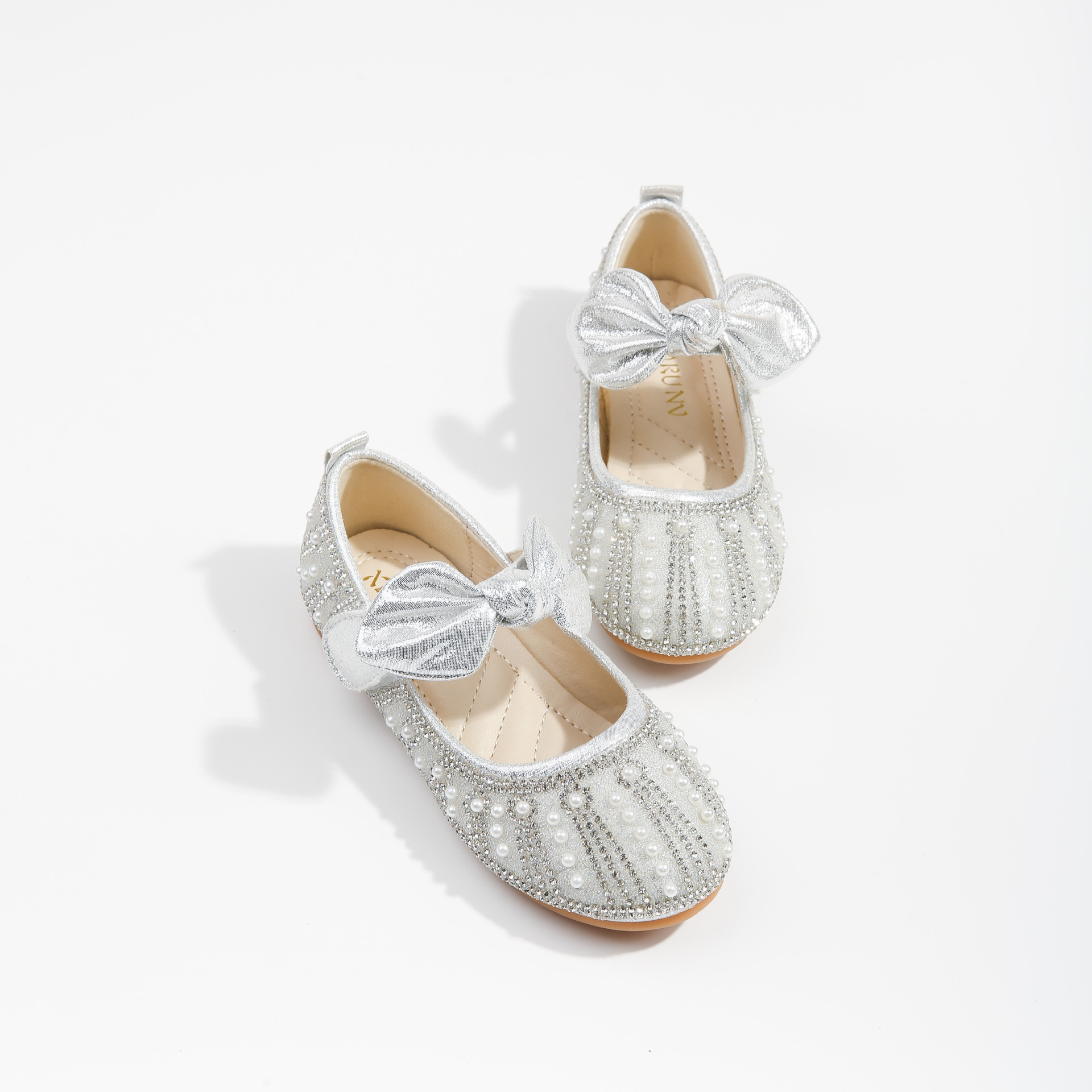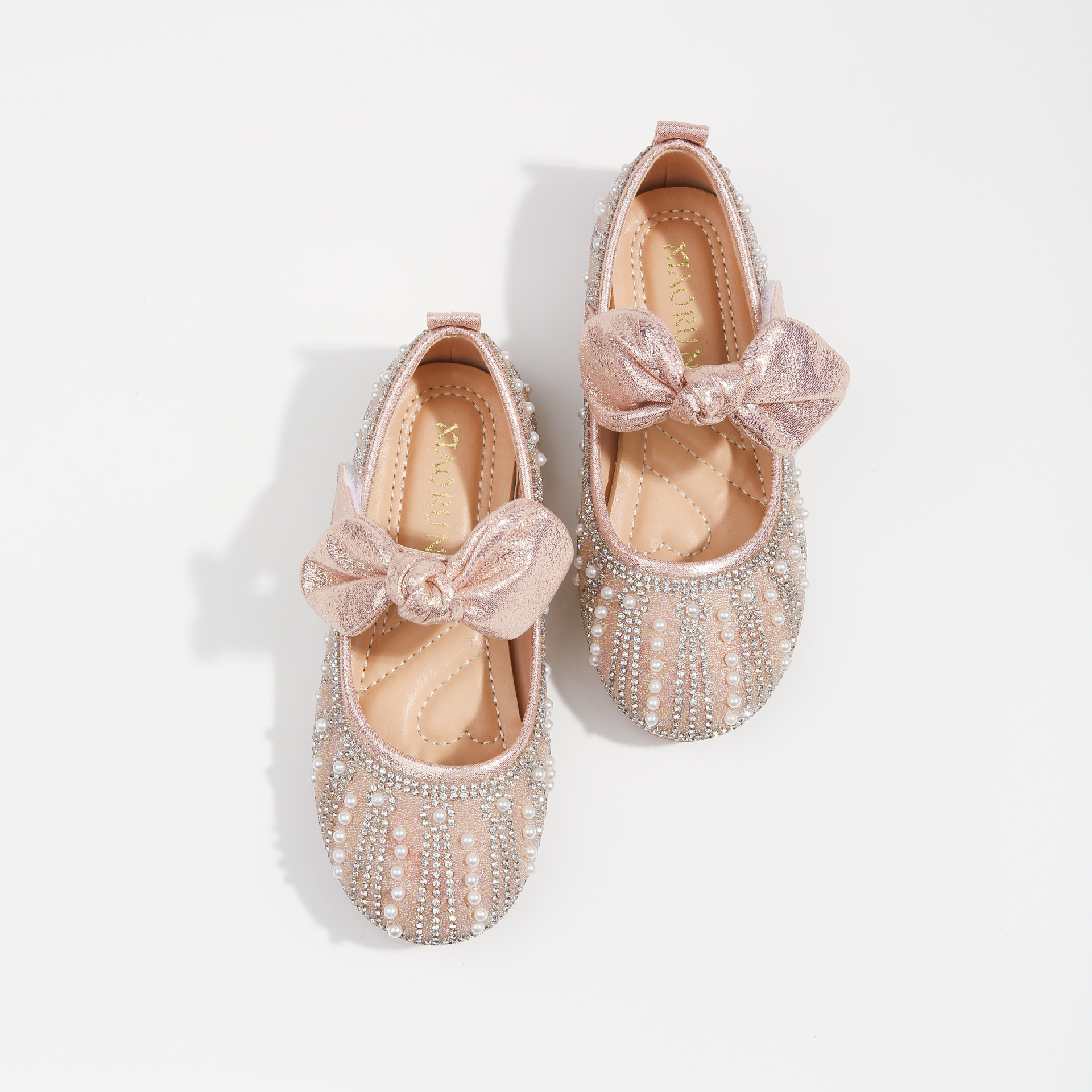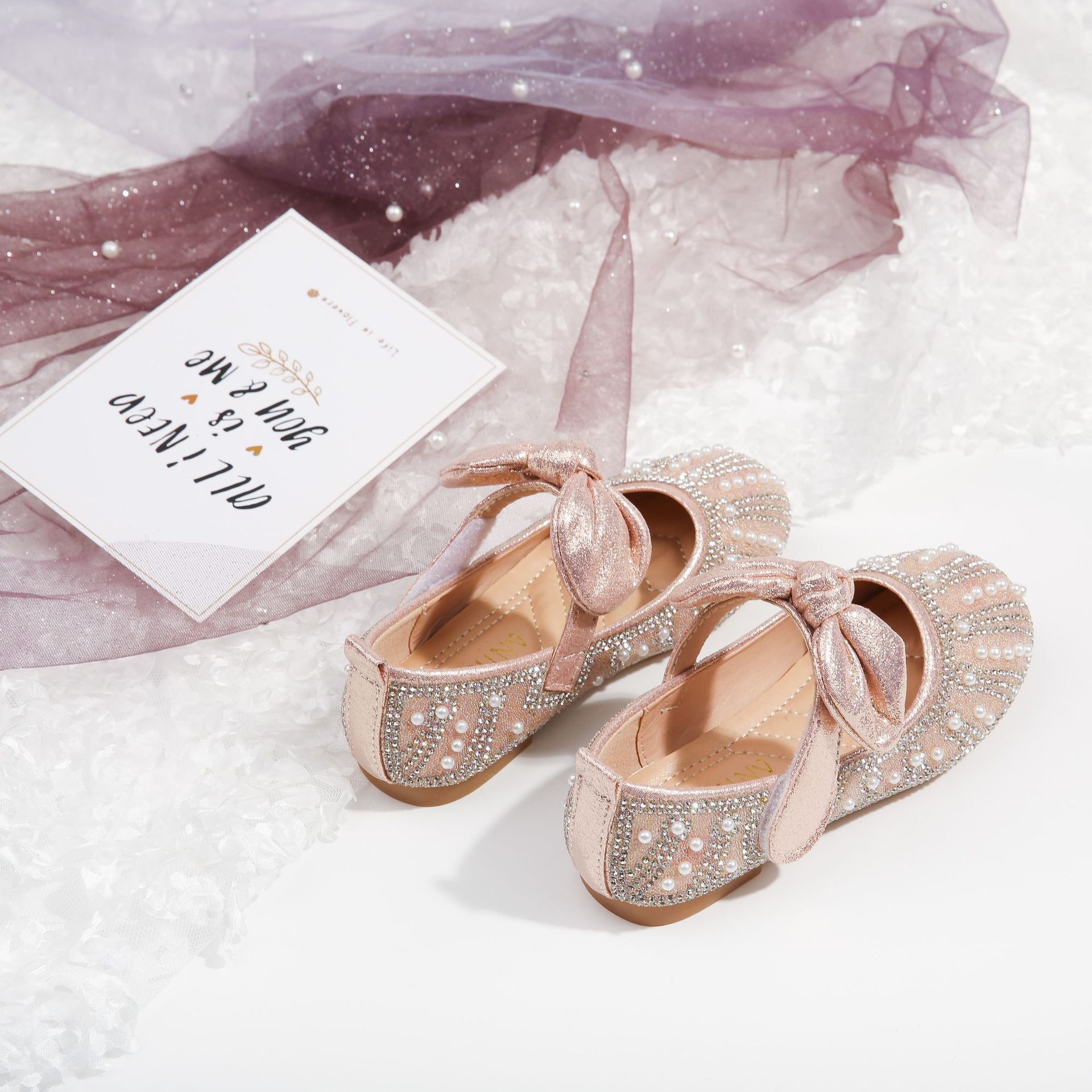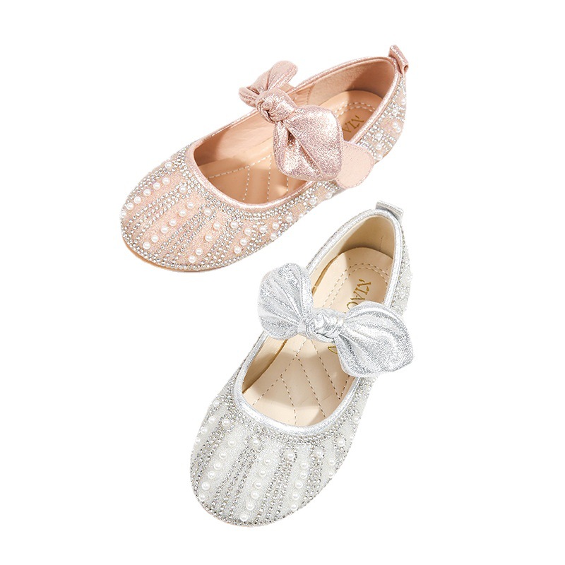 Принцесс обувь для девочек 2023 весна новый стиль дети милые мягкие хрустальные туфли на мягкой подошве маленькая девочка плоский лук одиночные туфли