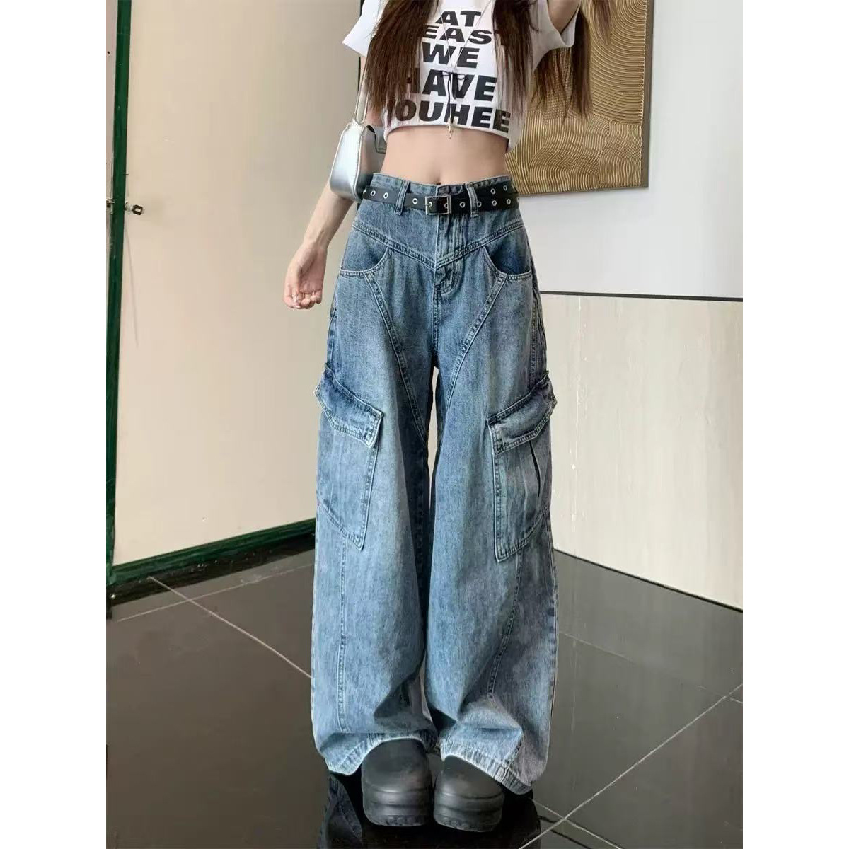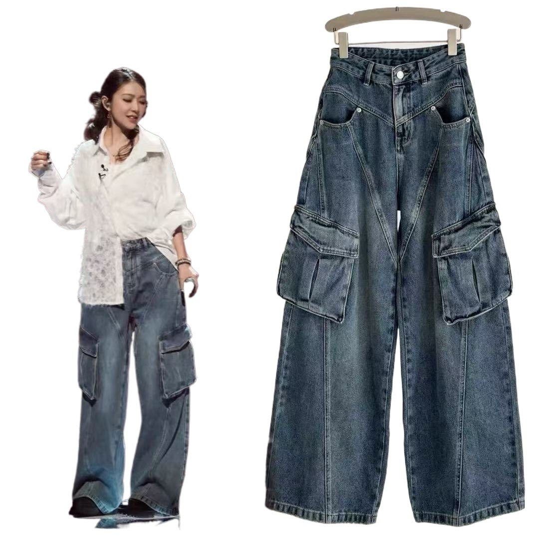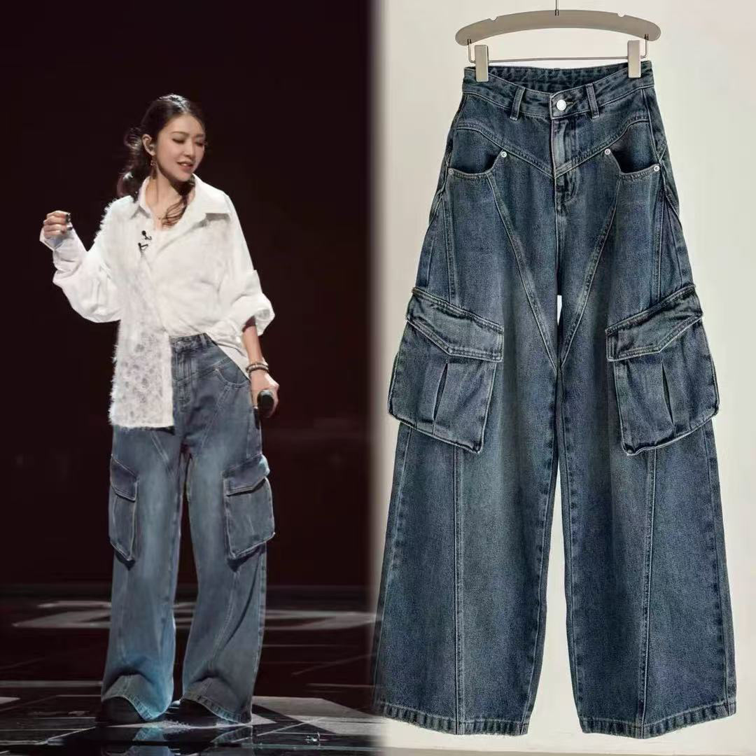 Широкие прямые карго-брюки с высокой талией, утягивающие, свободные, в стиле знаменитостей Van's, с множеством карманов для женщин 10909