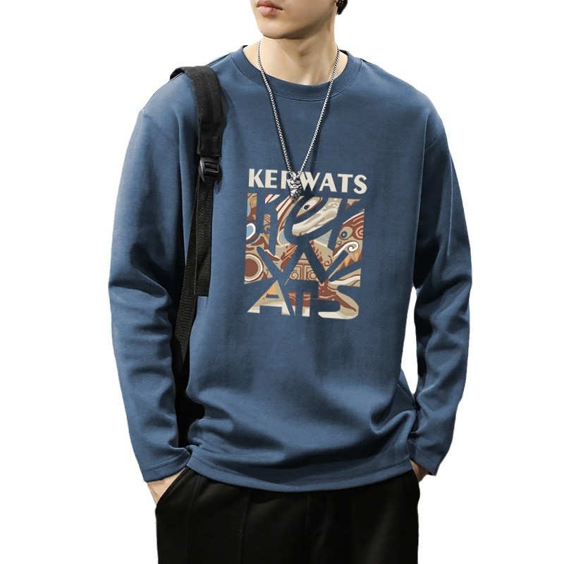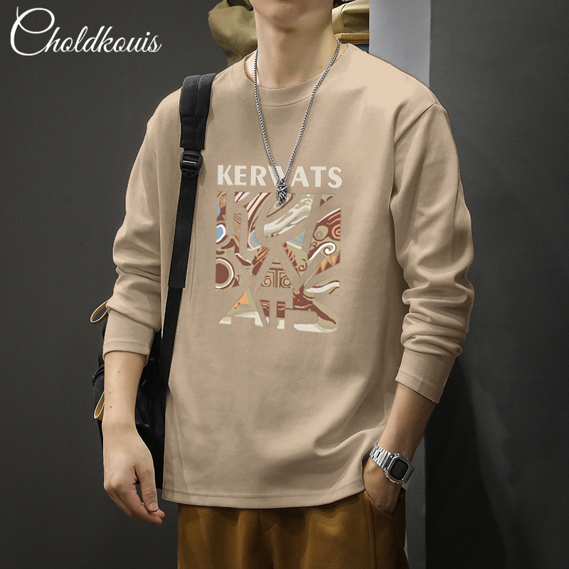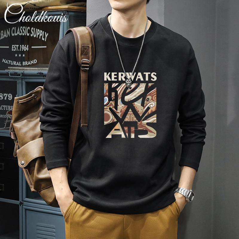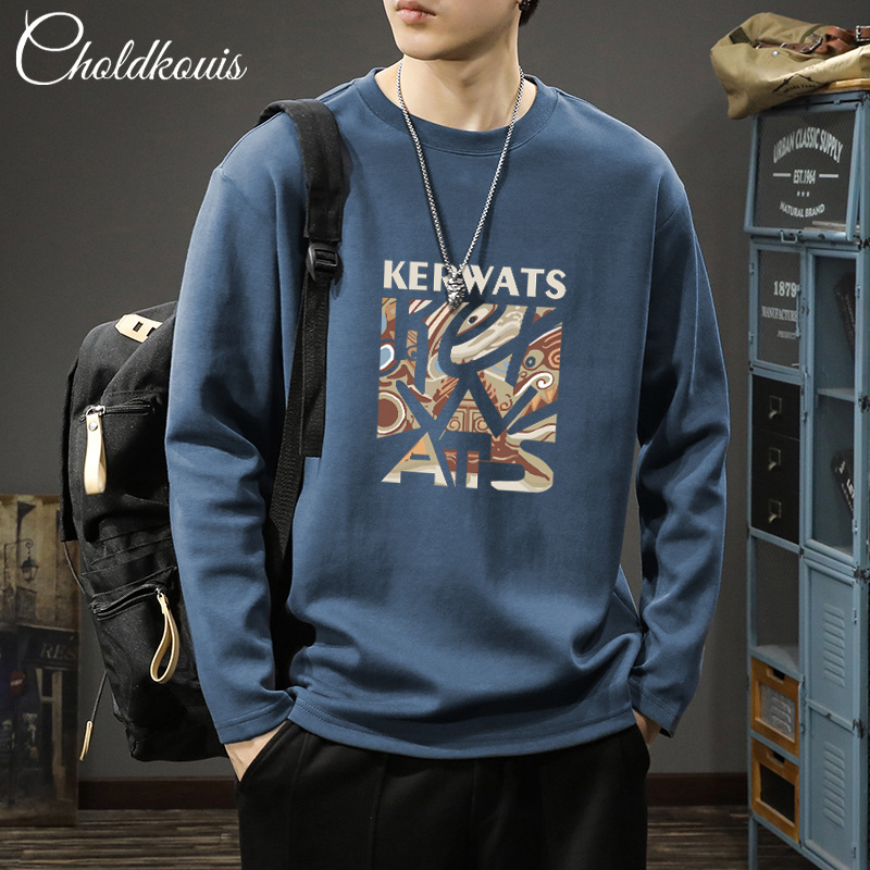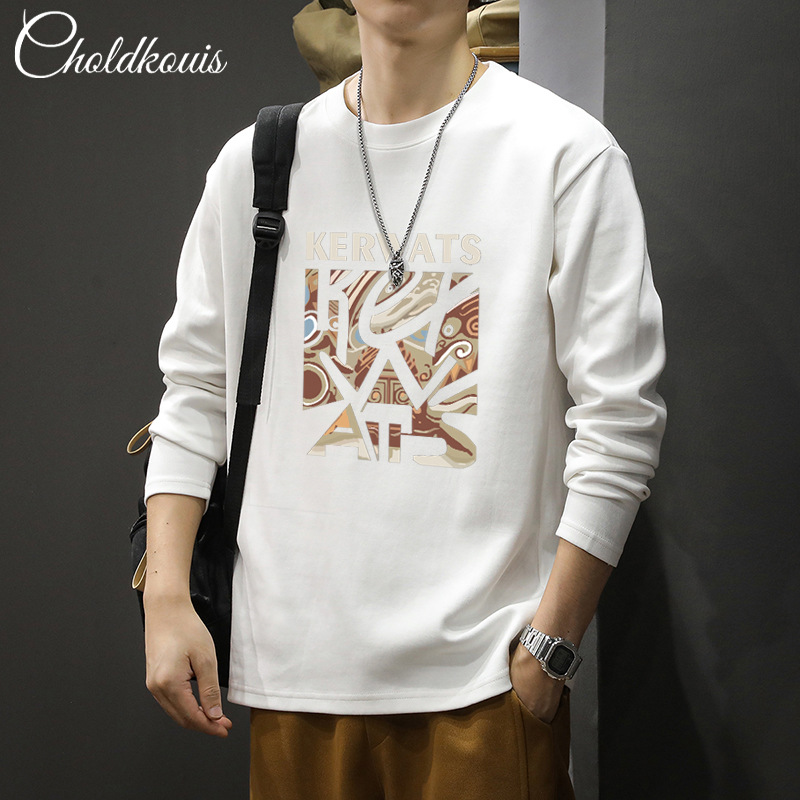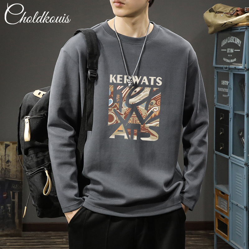 Главная страница > Новая тяжелая хлопковая футболка с длинными рукавами мужской свободный круглый воротник