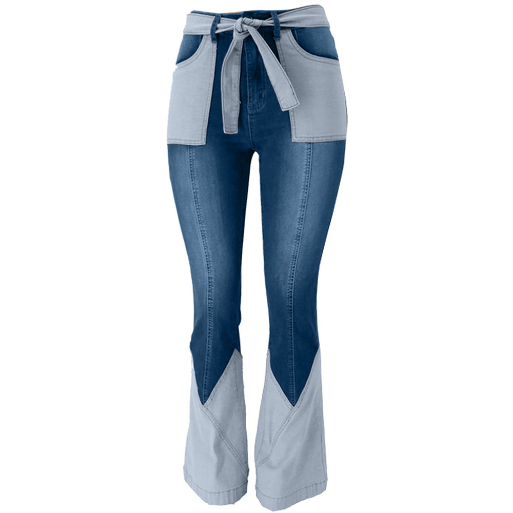 2022 Источник Прямые Поставки Эластичный Джинсовый Сращивание Amazon Wish AliExpress Ebay Джинсовые Расклешенные Брюки
