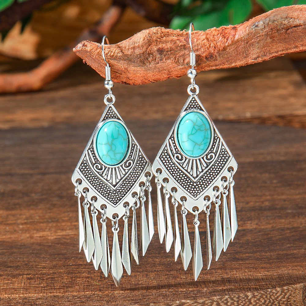 Главная страница > Богемные Популярные винтажные длинные серьги в форме капли, модные креативные акриловые бирюзовые серьги с колокольчиками для женщин