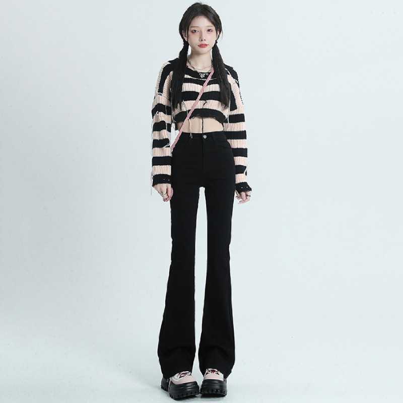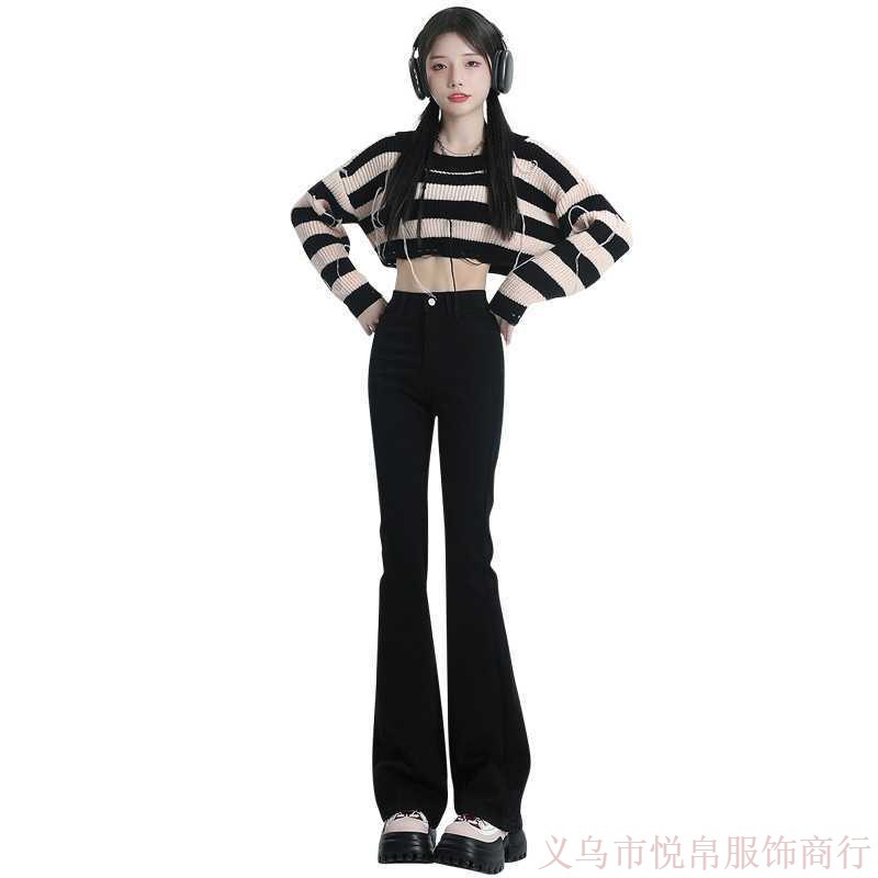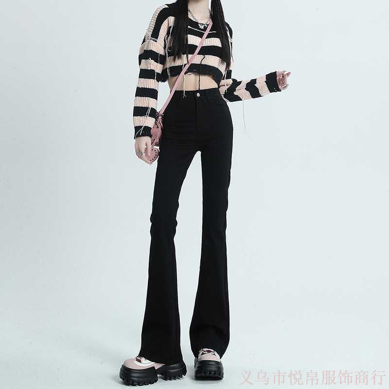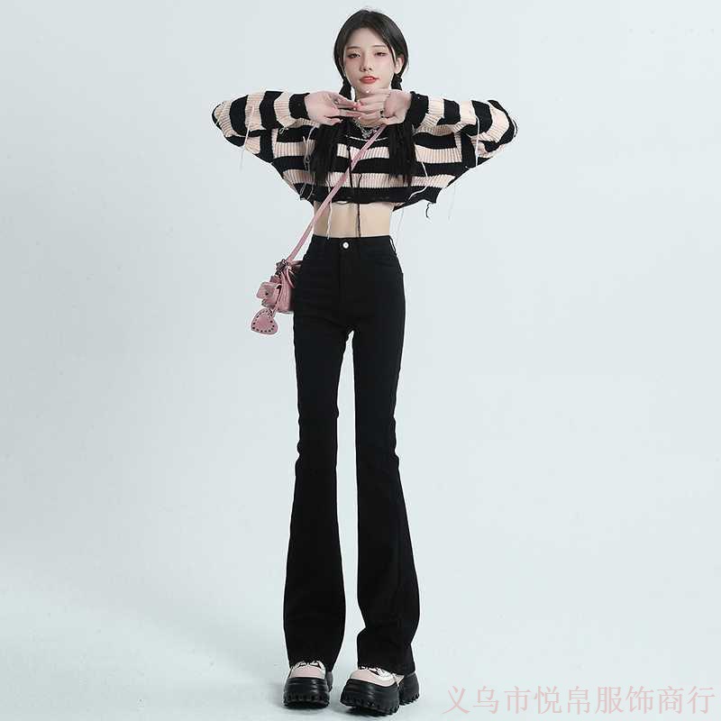 Главная страница > Черные микро расклешенные джинсы для женщин 2024 весна-осень, новые эластичные привлекательные маленькие подковообразные брюки с высокой талией