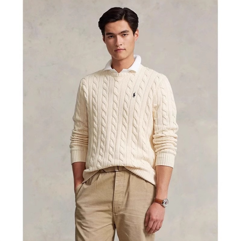 Главная страница > Мужской вязаный свитер с круглым вырезом и вышивкой логотипа пони в стиле RL Ralph Lauren Paul, осенне-зимний теплый пуловер для пар с кабельной вязкой.