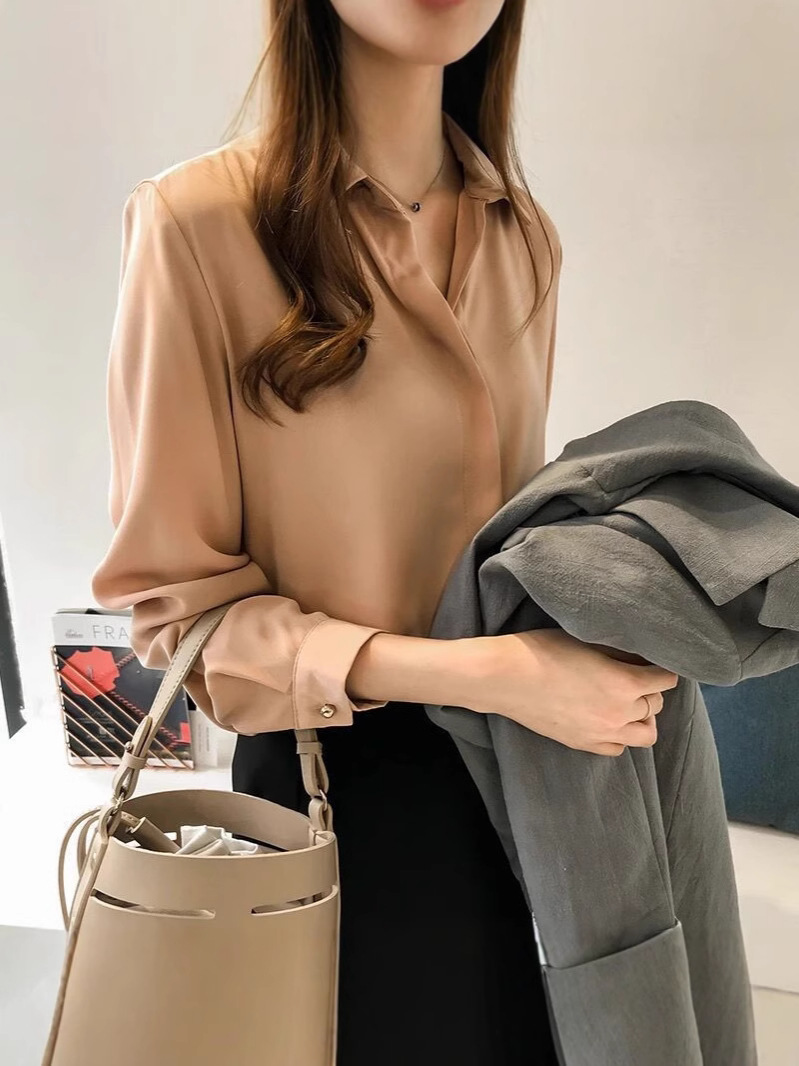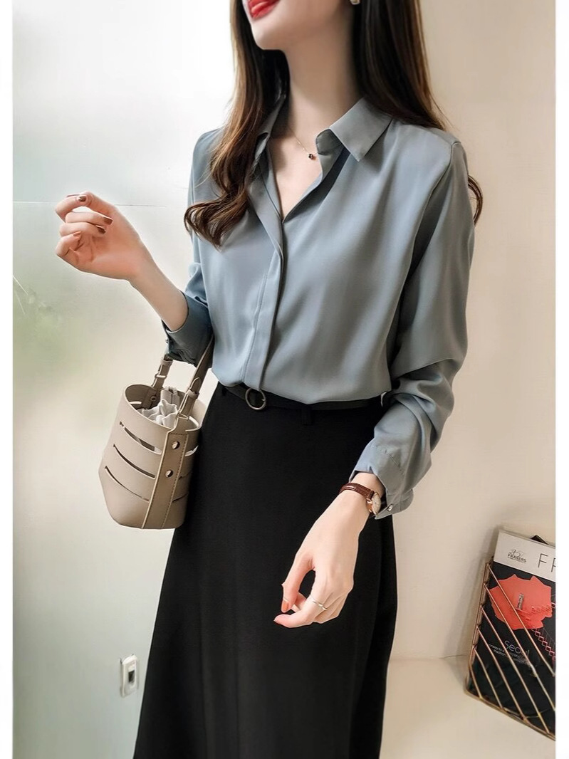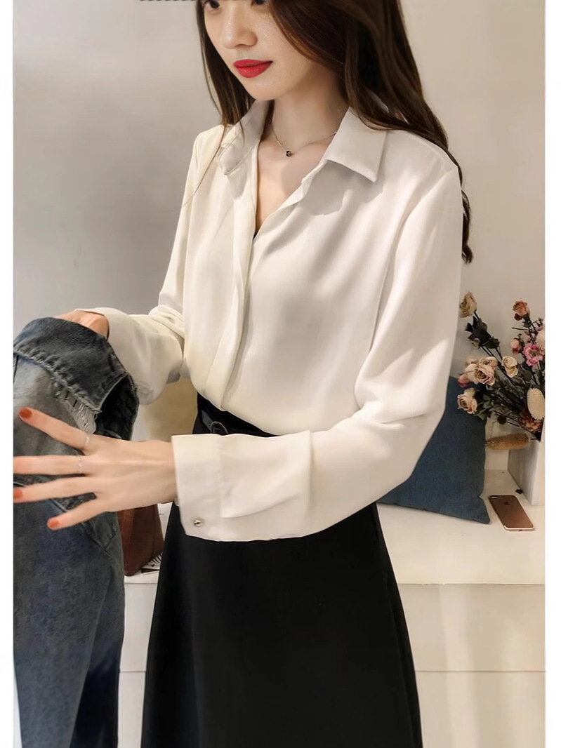 Главная страница > Женская рубашка осень 2025, новый корейский стиль, однотонная, длинный рукав, простой топ, шифон, для офиса