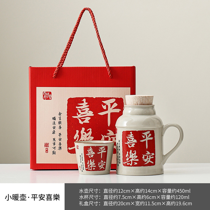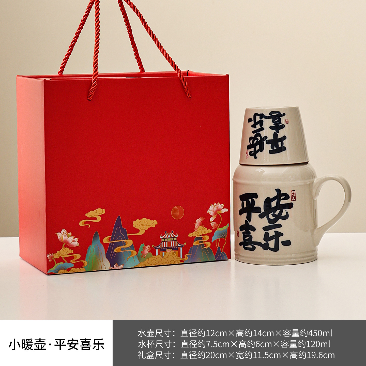 (Мир и радость) маленький термос + чашка для хозяина + красная подарочная коробка