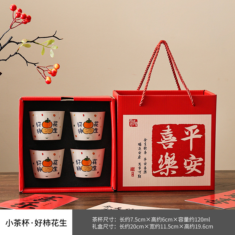 (Персиммон и арахис на удачу) Набор из четырех чашек + подарочная коробка «На удачу»