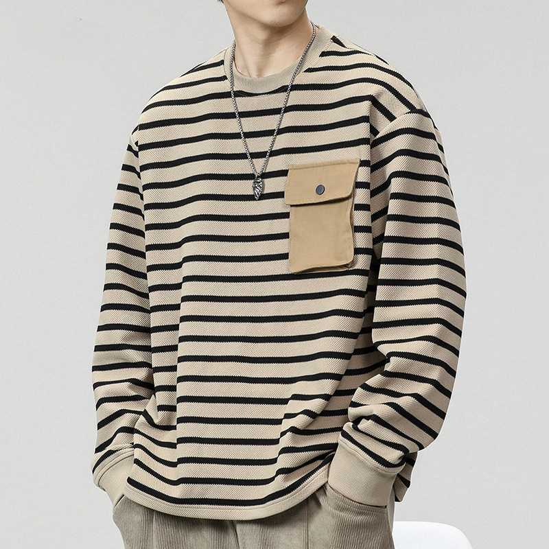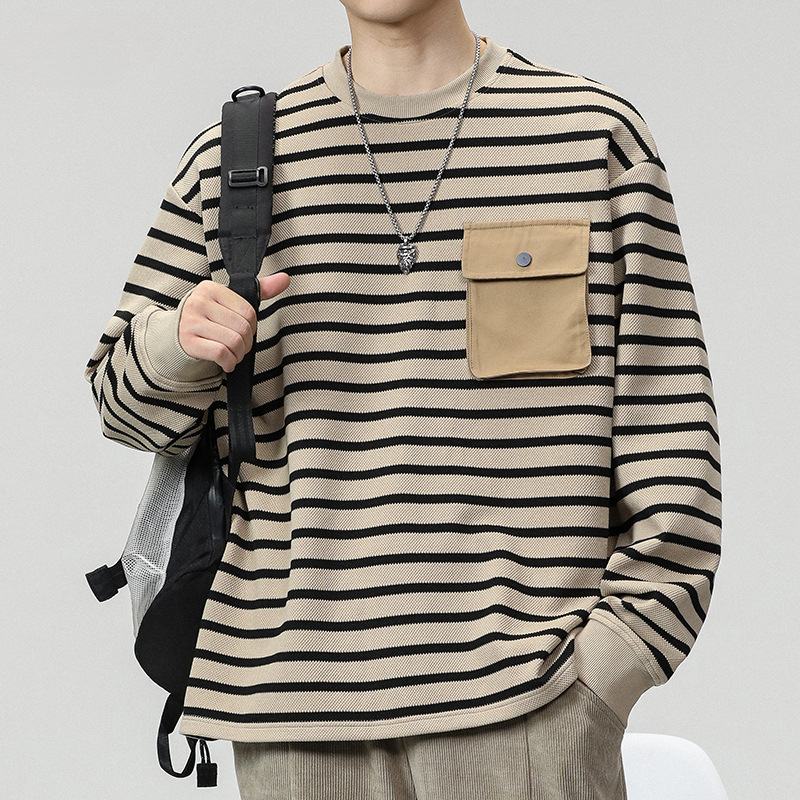 Главная страница > Мужская полосатая футболка с длинными рукавами мужская мода мужская толстовка осенняя мужская рубашка