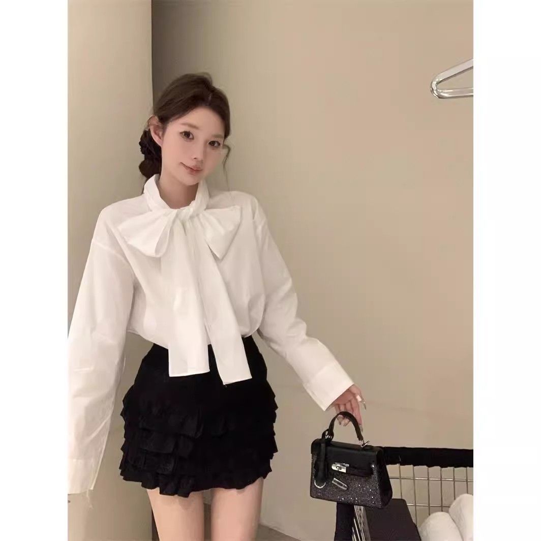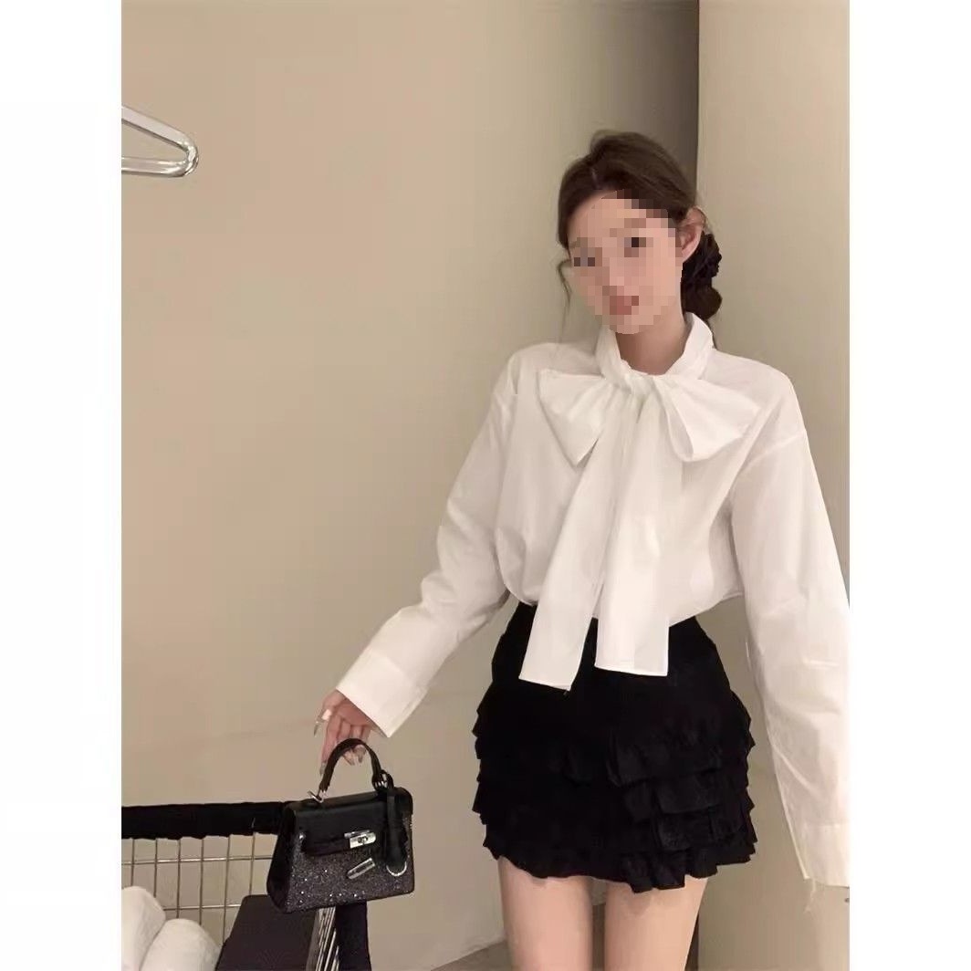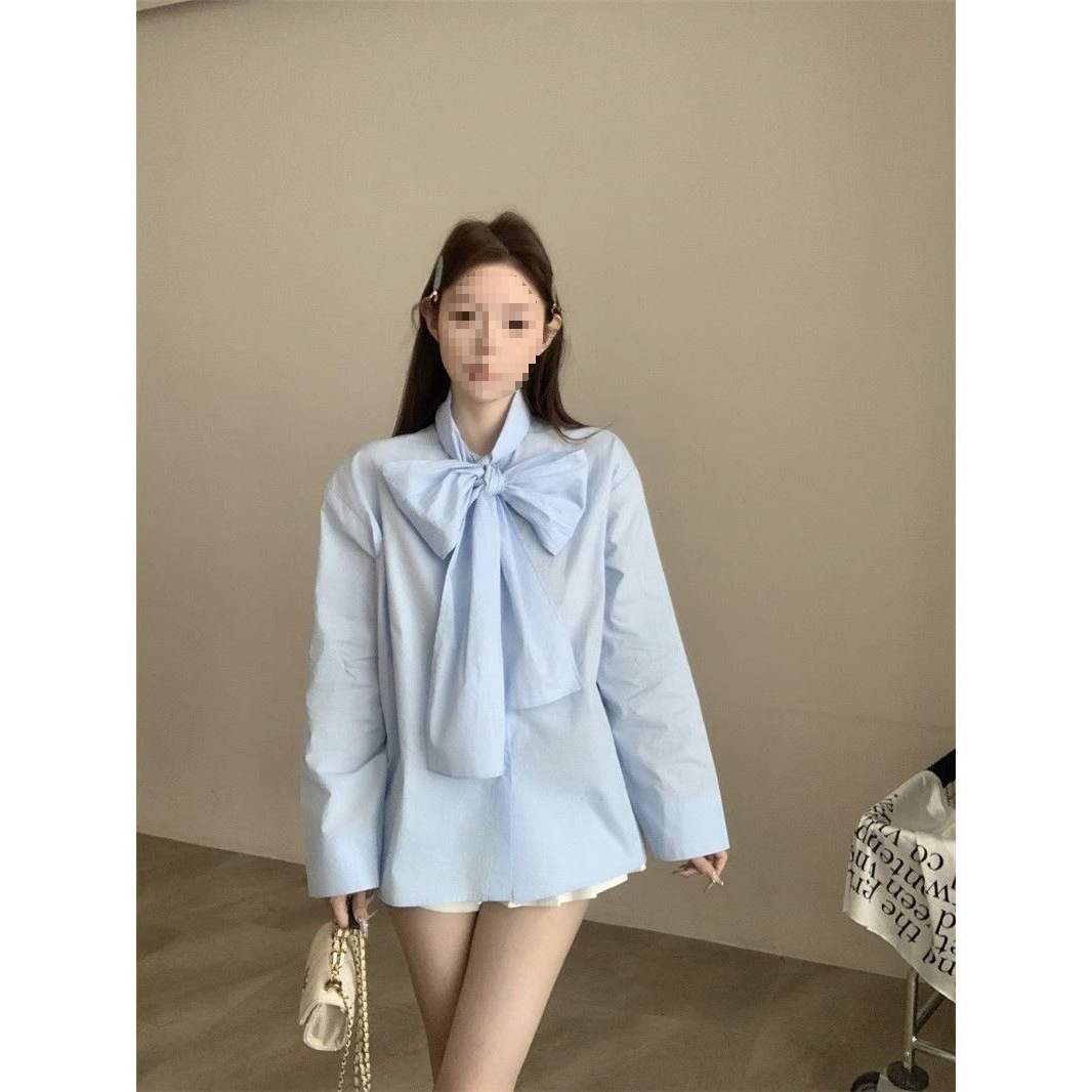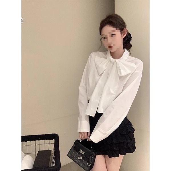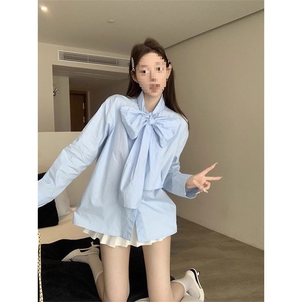 Главная страница > Женская рубашка с длинным рукавом и галстуком-бабочкой, весна 2025, новый дизайн, стиль преппи, свободный и шикарный топ