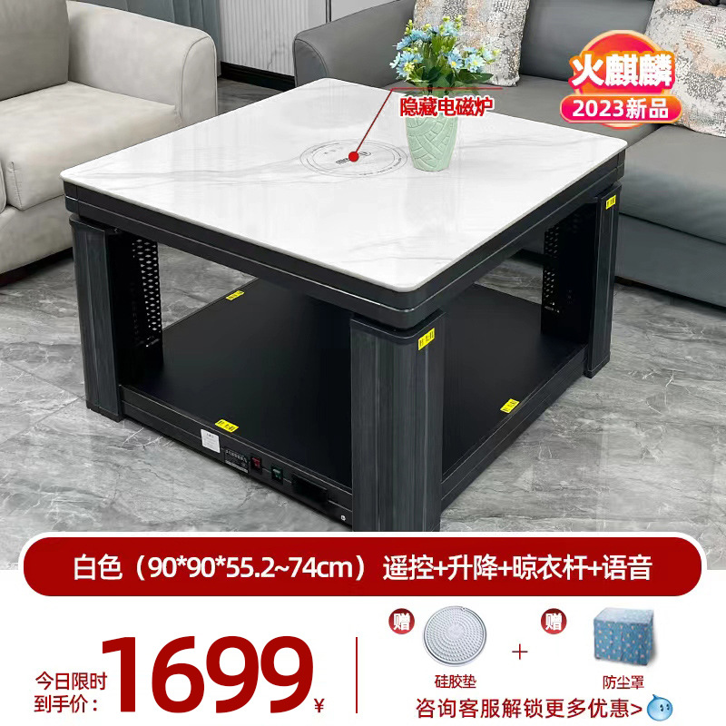 [Подъемный квадратный стол в горячем стиле-Huo Qilin] Белый 90*90*55,2 ~ 74 см-стойка для сушки одежды + голосовая кнопка дистанционного управления