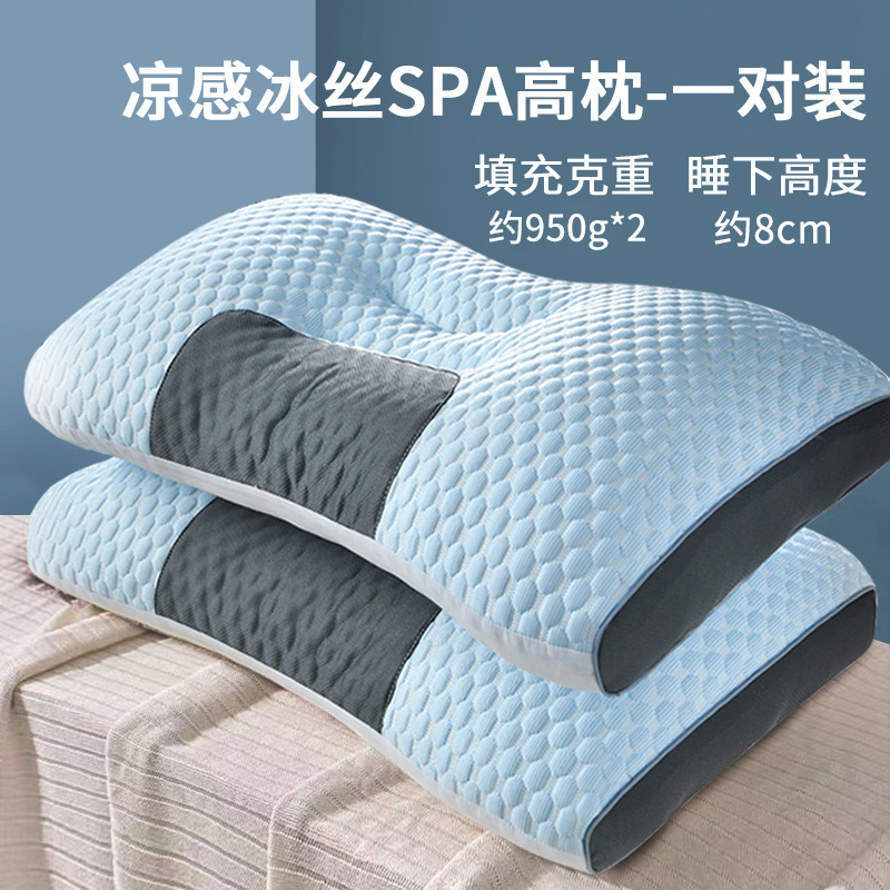 Cool Ice Silk Pea Pillow-Blue [Пара высоких подушек]