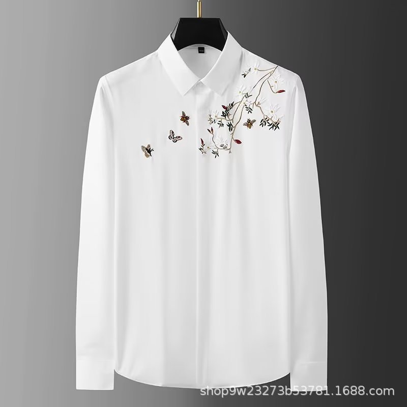 Главная страница > Высококачественная белая рубашка с вышивкой в китайском стиле, Мужская Осенняя облегающая Модная Повседневная рубашка с длинными рукавами, не требующие глажки