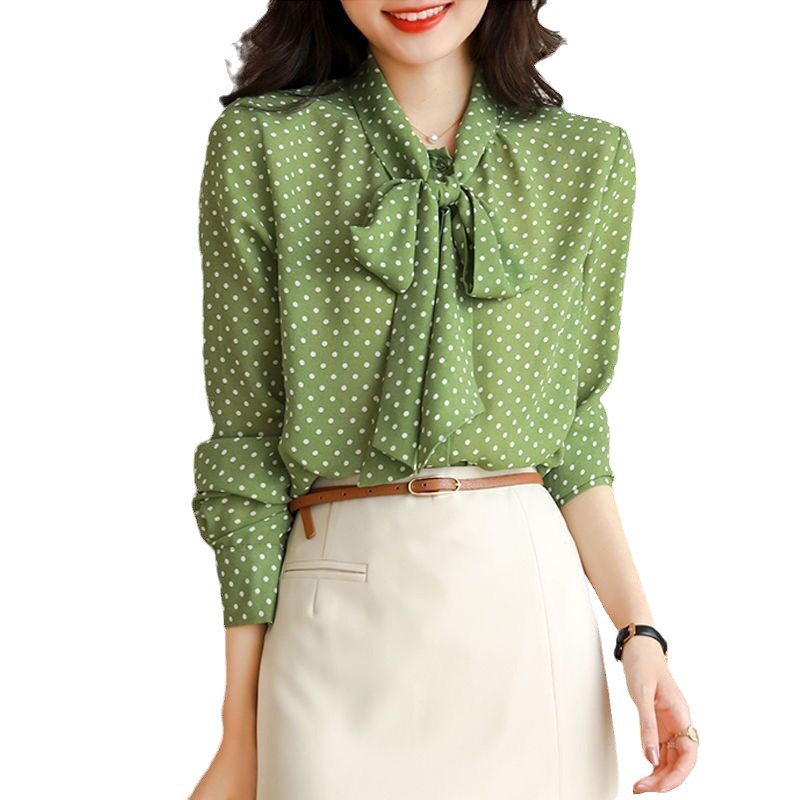 Главная страница > 2024 весна и осень новая рубашка женская зеленая точка рубашка воротник с длинными рукавами повседневный кардиган тонкий топ женский