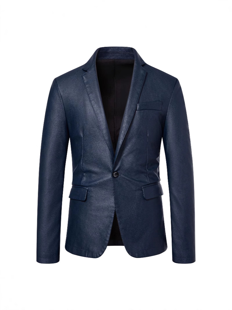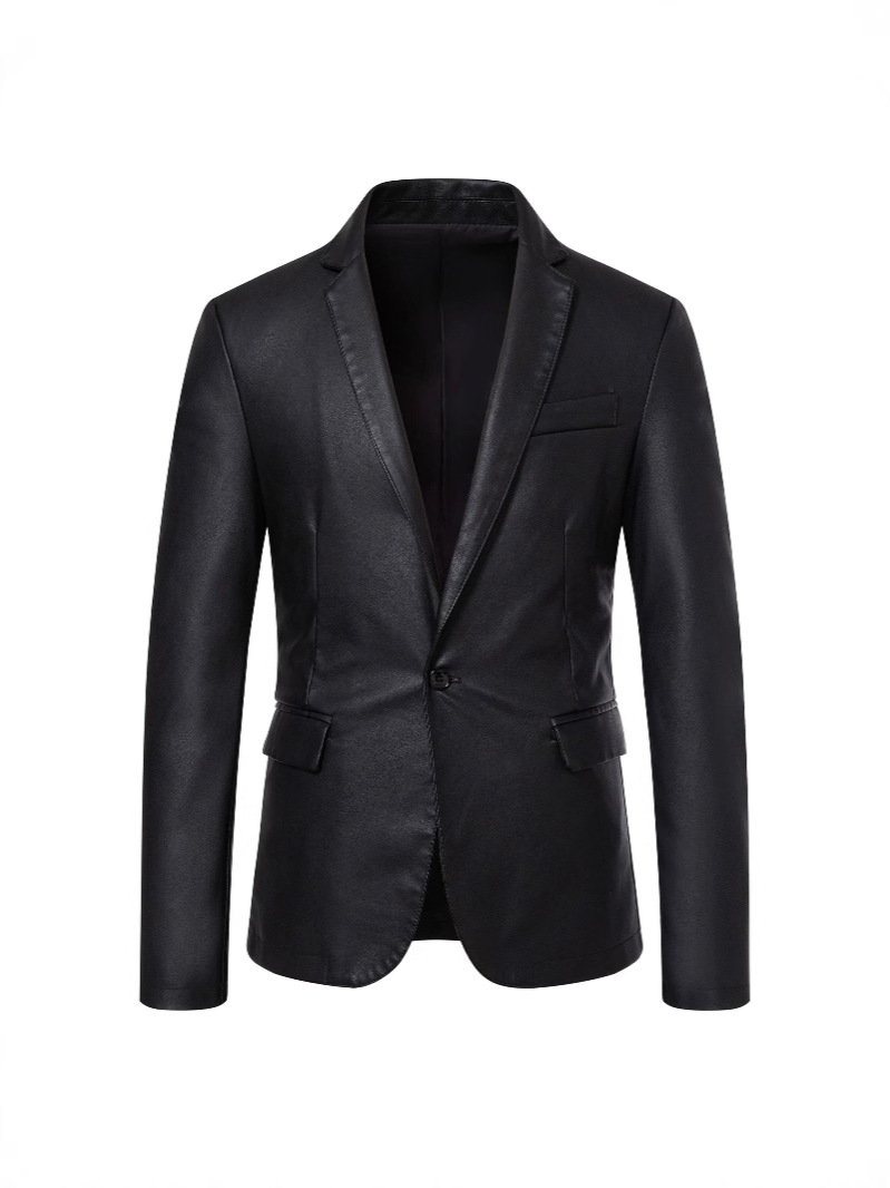 Главная страница > 2025 новый модный стройный кожаный костюм Мужское кожаное пальто повседневное маленькое платье мужское корейское поп-куртка