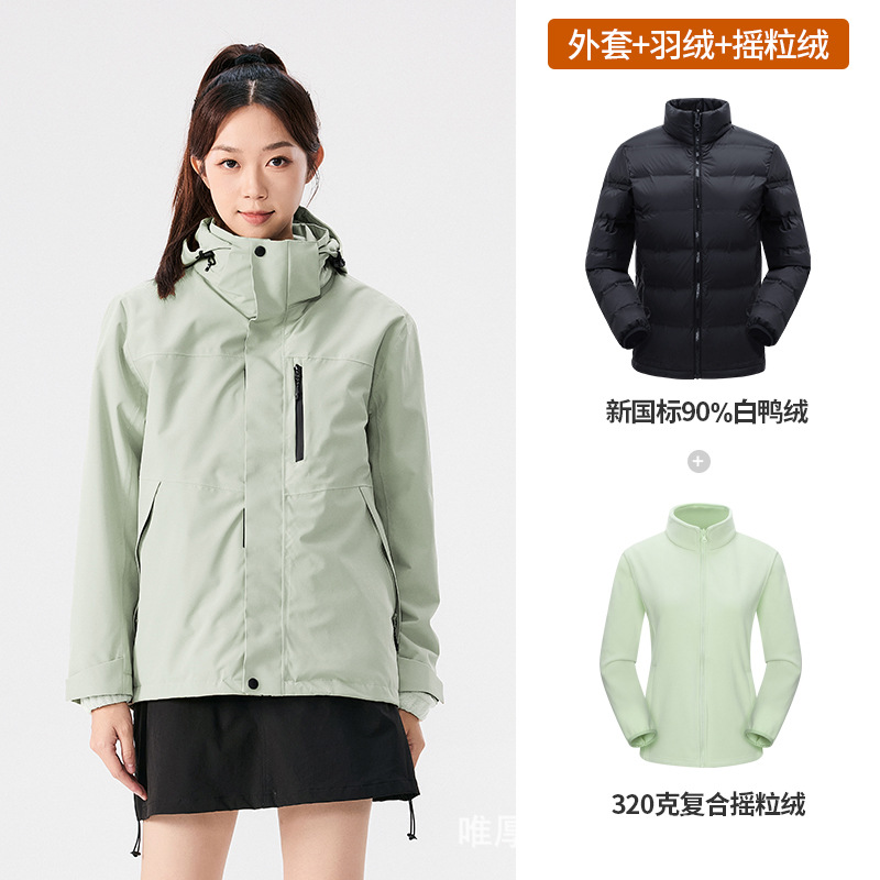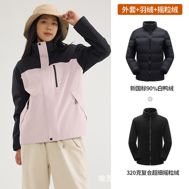 Женская куртка «Три в одном» с флисовой подкладкой и съемным комплектом из двух предметов для мужской дорожной водонепроницаемой одежды для альпинизма.