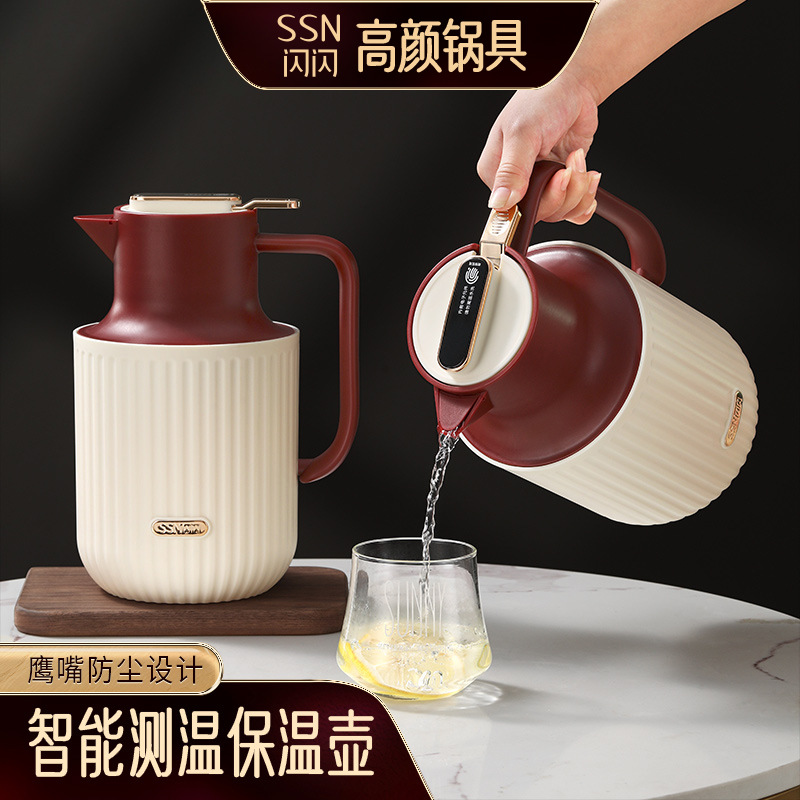 Сверкающий термос премиум-класса Бытовой термос Чайник с теплой водой Свадебный красный термос умным дисплеем Горшок для горячей воды