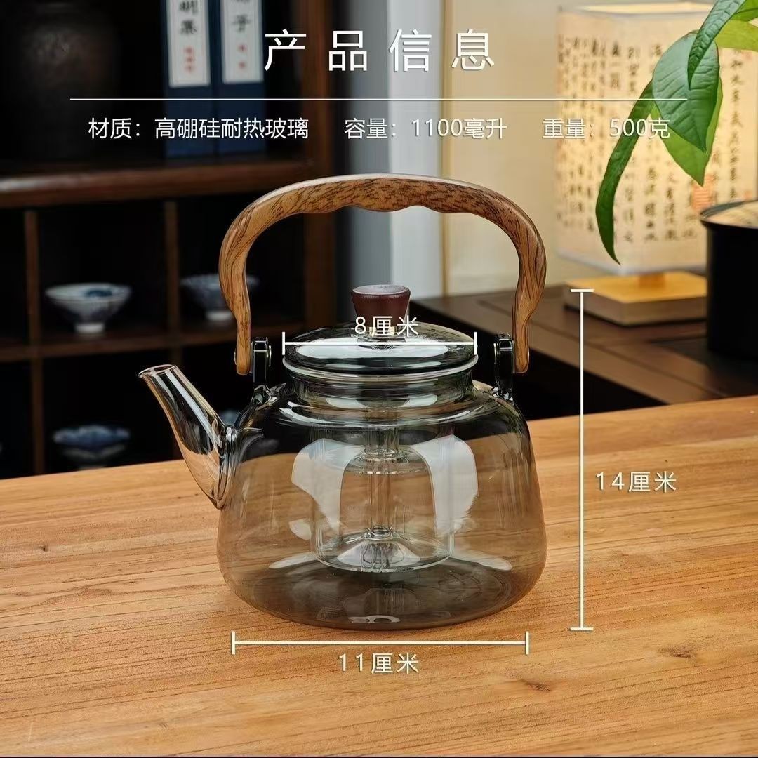 新加厚耐热玻璃提梁壶现代简约耐高温大容量蒸煮茶壶电陶炉专用壶