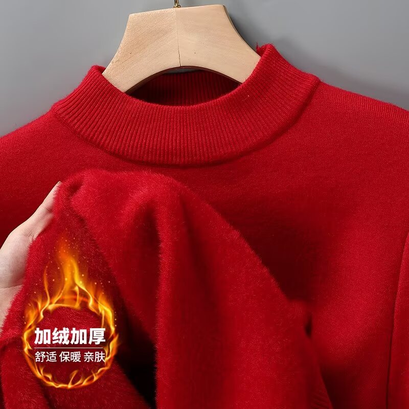 Зимний новый сплошной свитер с бархатным утолщением