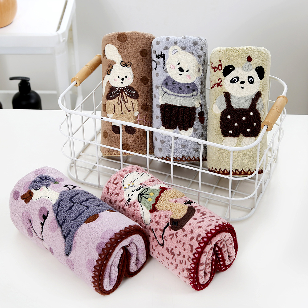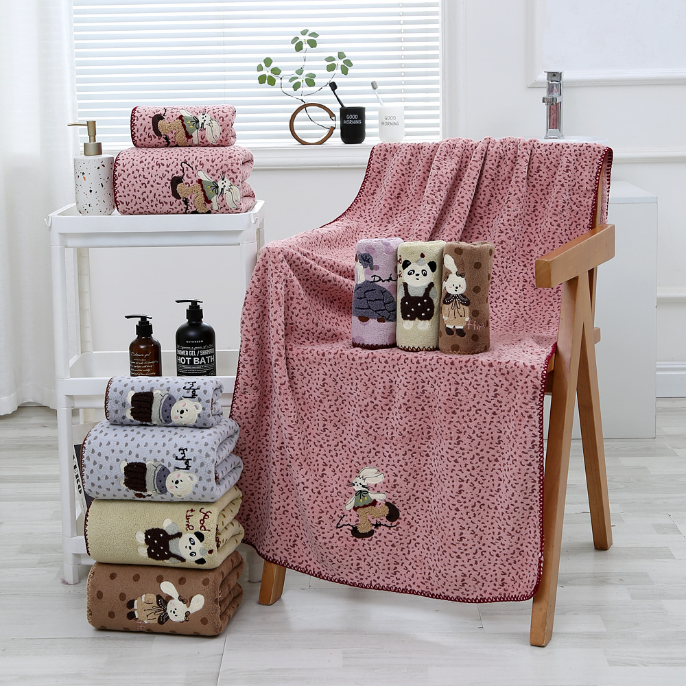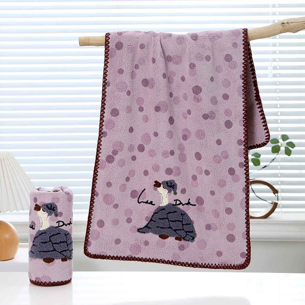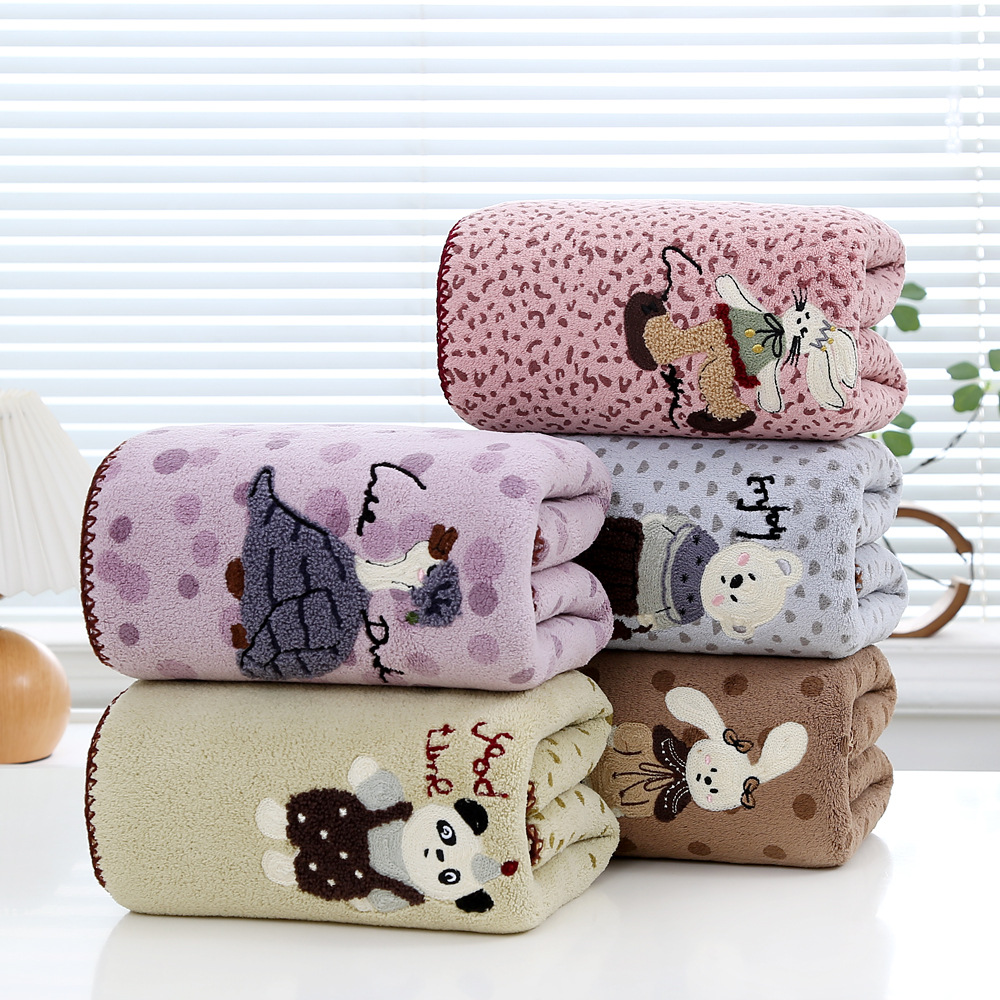 Главная страница > Новое кросс-бордерное коралловое велюровое полотенце с крючковым краем, вышитое, с мультяшным принтом, мягкое, впитывающее, быстросохнущее, подарочное полотенце для ванной