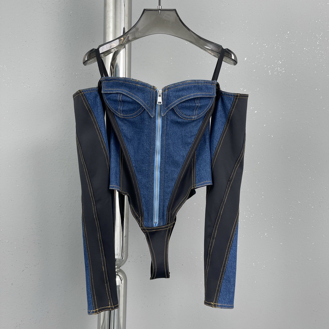 Главная страница > Европейский и американский стиль новый женский модный нишевый дизайн сексуальный стрейч контрастных цветов джинсовые шить приталенный Fit без бретелек все-в-одном