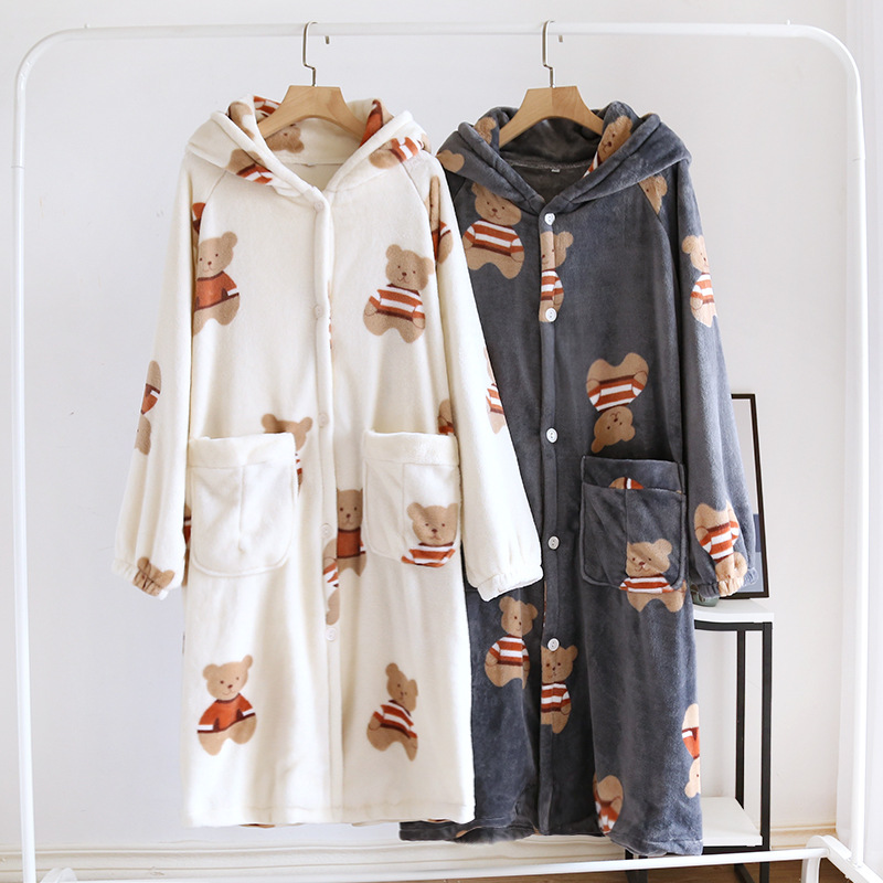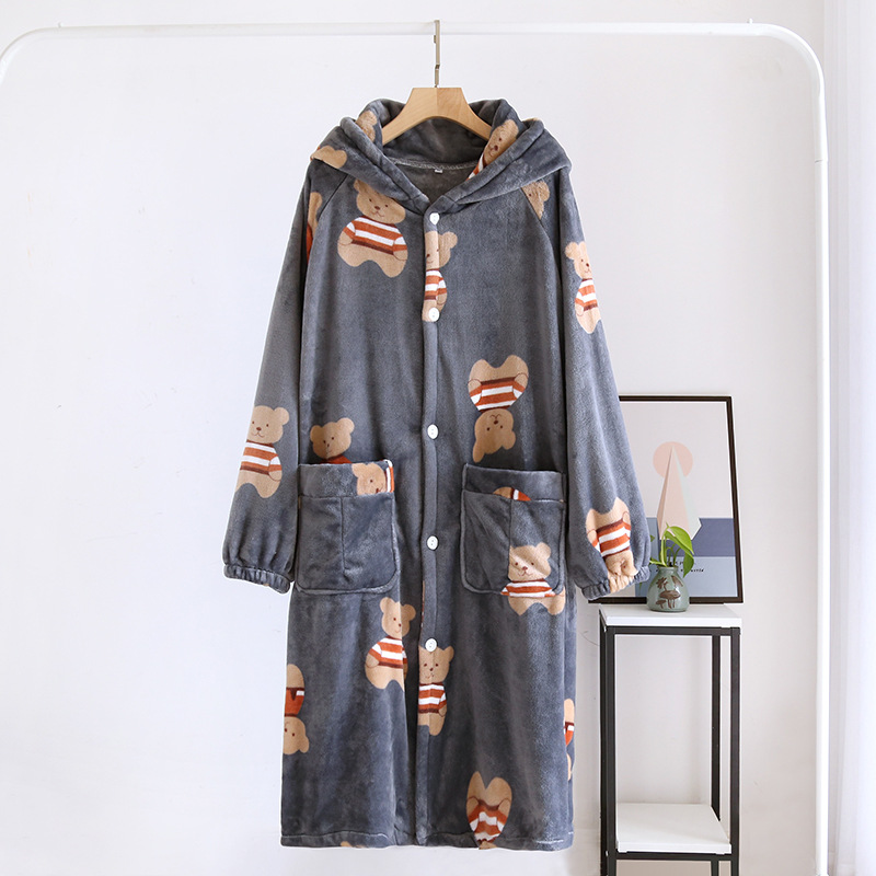 Пижама для пары Осенне-зимняя Коралловая флисовая Мужская и женская утолщенная длинная ночная рубашка на флисовой подкладке Фланелевая теплая ночная рубашка с героями мультфильмов