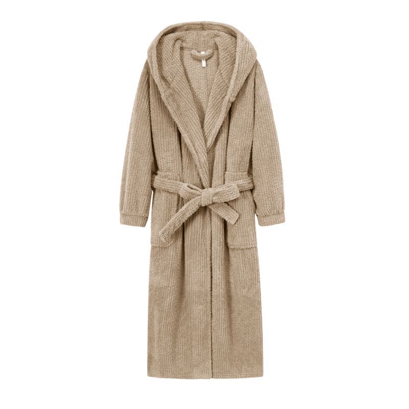 Мужской халат с капюшоном и полосатым узором цвета "верблюжий" + пижама