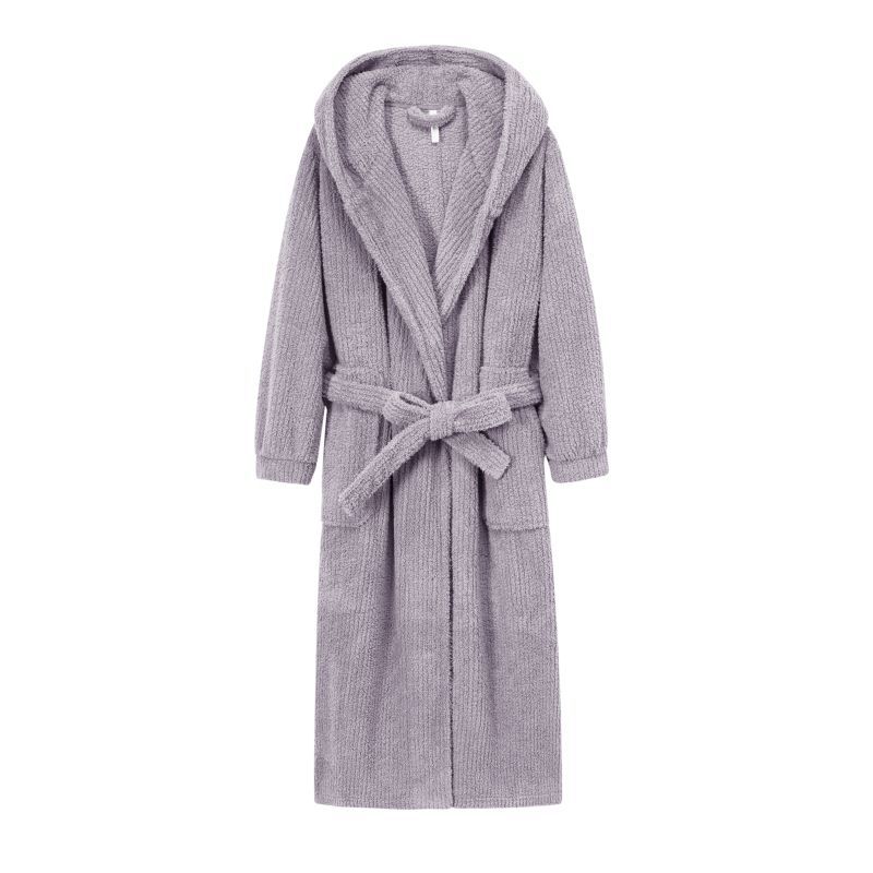 Женский фиолетовый полосатый халат с капюшоном + пижама