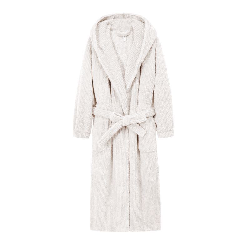 Женский - Халат с капюшоном и полосатым узором Off-White + Пижамные брюки