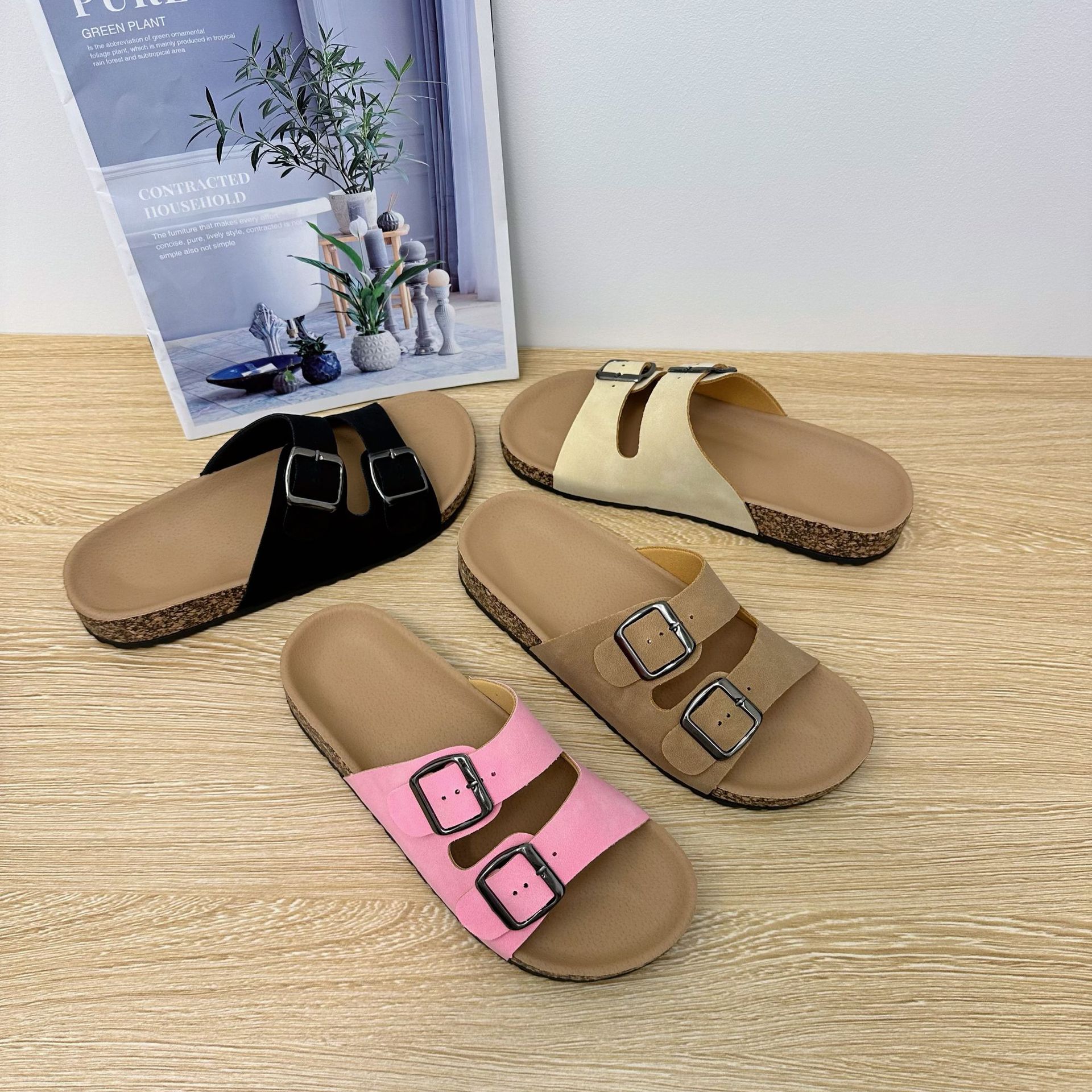 Шлепанцы женские больших размеров для пляжа, повседневные, с двойной пряжкой, пробковые, оптом от производителя, в наличии, модель 2025 года