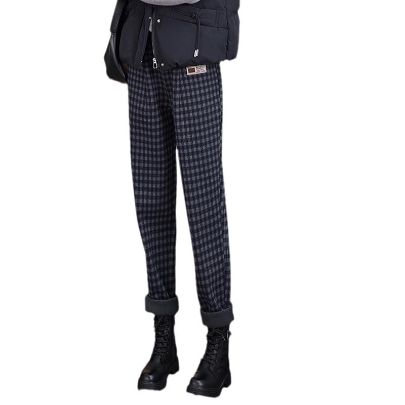 Новые зимние женские брюки 2025 года: теплые, на флисе, в крупную клетку, повседневные, свободные, стройнящие, в стиле «папиных» брюк, шерстяные брюки-шаровары
