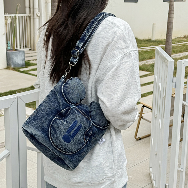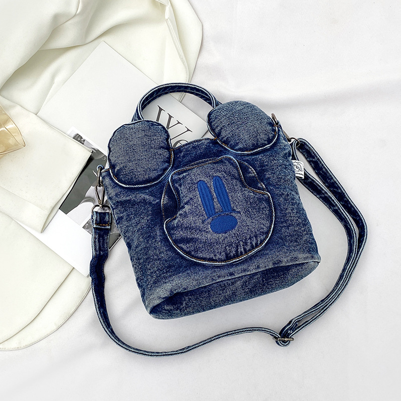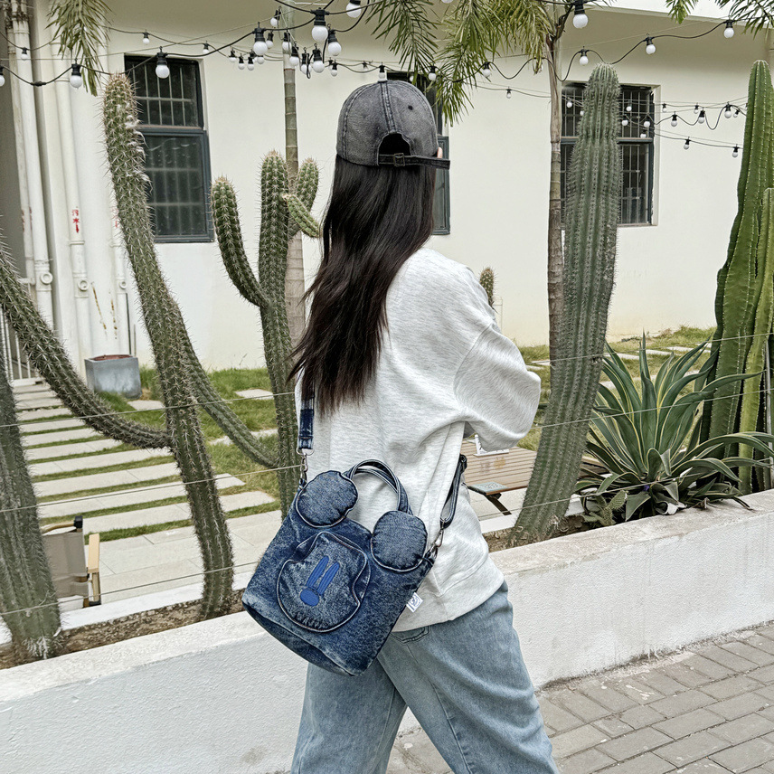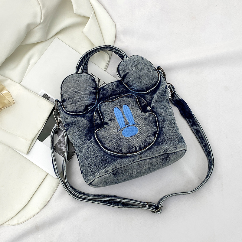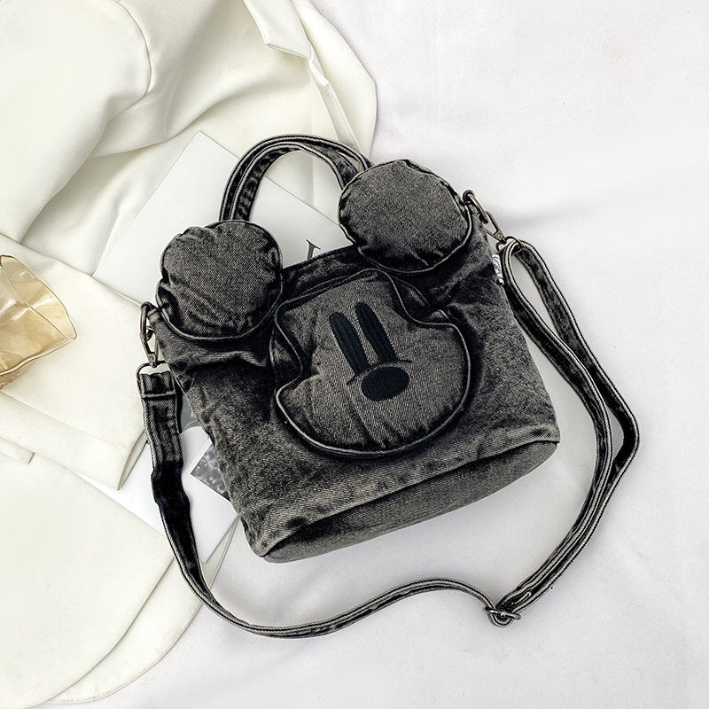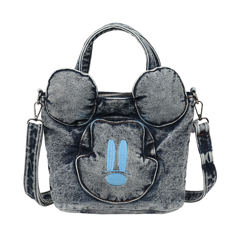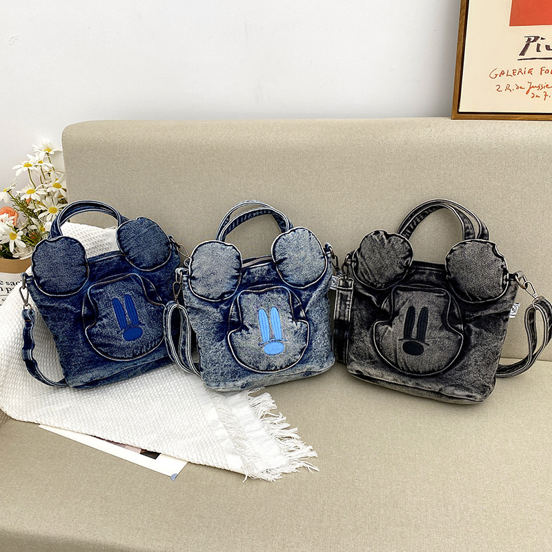 Главная страница > Женская сумка через плечо 2025 весна-лето новая модная ретро потертая джинсовая сумка с головой Микки, ручная сумка-тоут