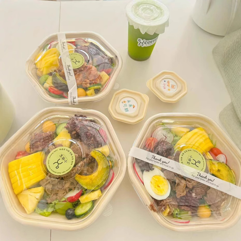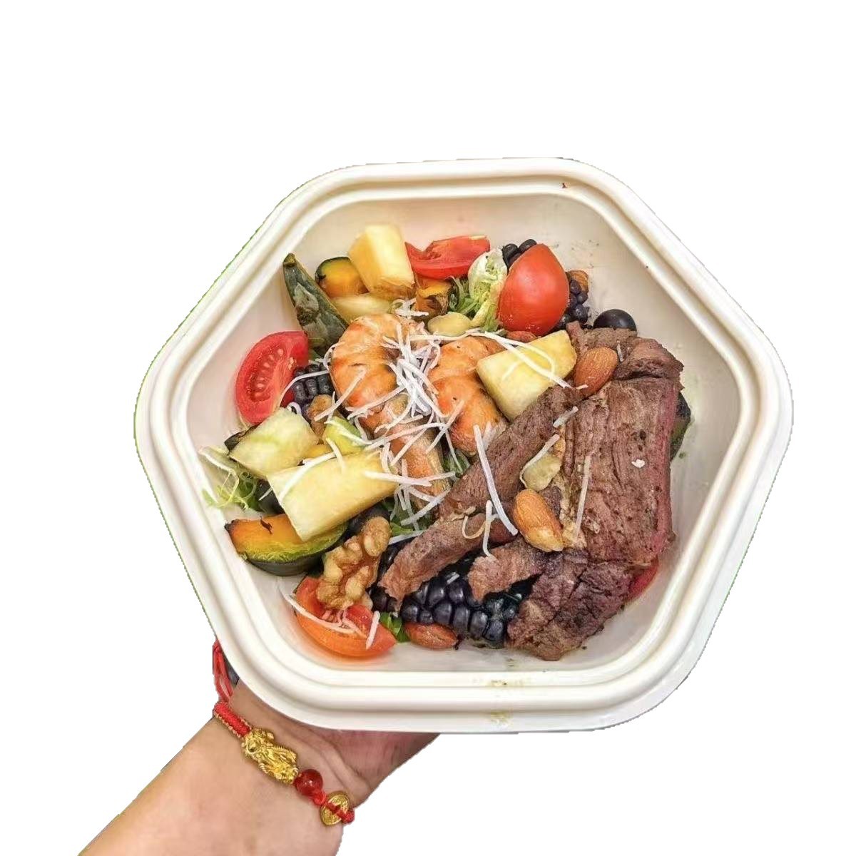 Главная страница > Упаковка для салатов и ланчей из кукурузного крахмала, одноразовые шестиугольные бумажные контейнеры для пасты и легких закусок
