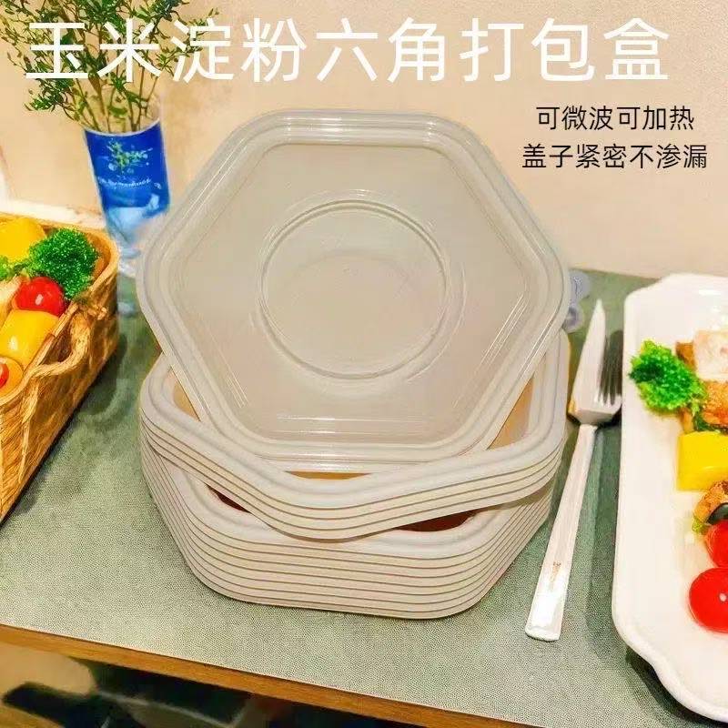Упаковка для салатов и ланчей из кукурузного крахмала, одноразовые шестиугольные бумажные контейнеры для пасты и легких закусок