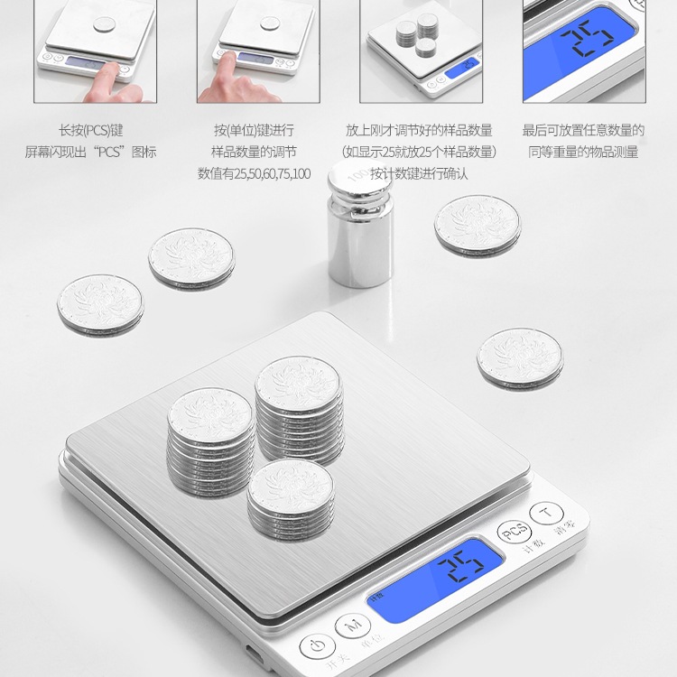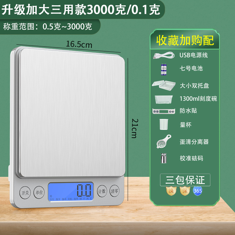 - [Горячая распродажа] Перезаряжаемая модель 3 кг/0,1 г поставляется с двумя лотками + кабелем для зарядки + водонепроницаемой наклейкой